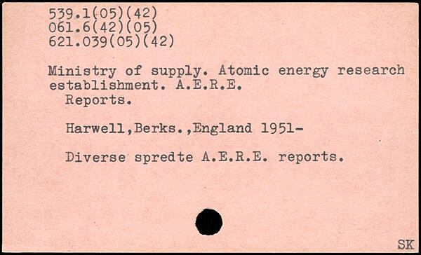 Ministry of supply. Atomic energy research establishment. A.E.R.E. Reports. Harwell,Berks.,England 1951-Diverse spredte A.E.R.E. reports.