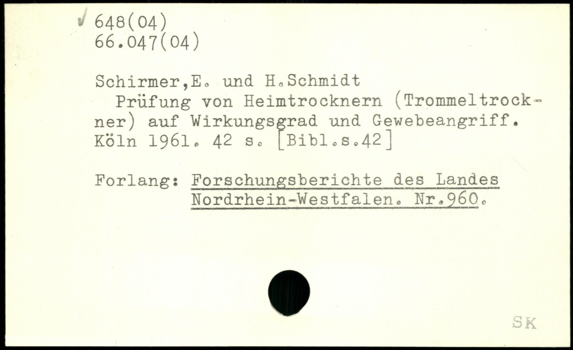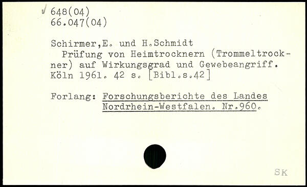 Schirmer,E, und HoSchmidt Prüfung von Heimtrocknern (Trommeltrockner) auf Wirkungsgrad und Gewebeangriff.