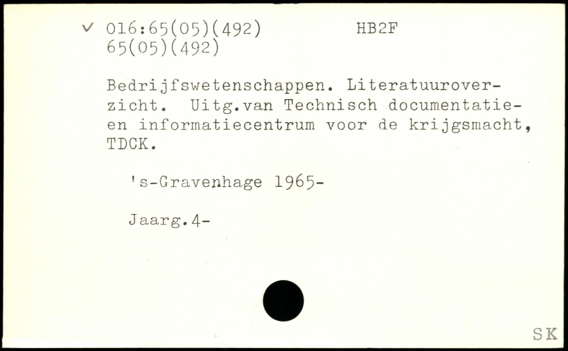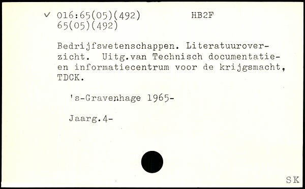 Bedrijfswetenschappen. Literatuurover-zicht. Uitg.van Technisch documentatie-en inforinat iecentrum voor de krijgsmacht, TDCK. 1s-Gravenhage 1965-J aarg.4-