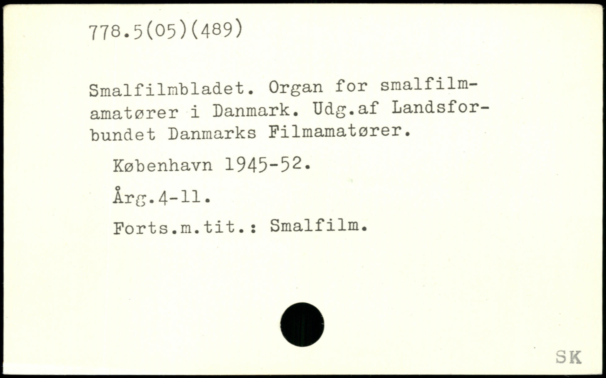 Smalf i liab ladet. Organ for smalfilmamatører i Danmark. Udg.af Landsforbundet Danmarks Pilmamatører.