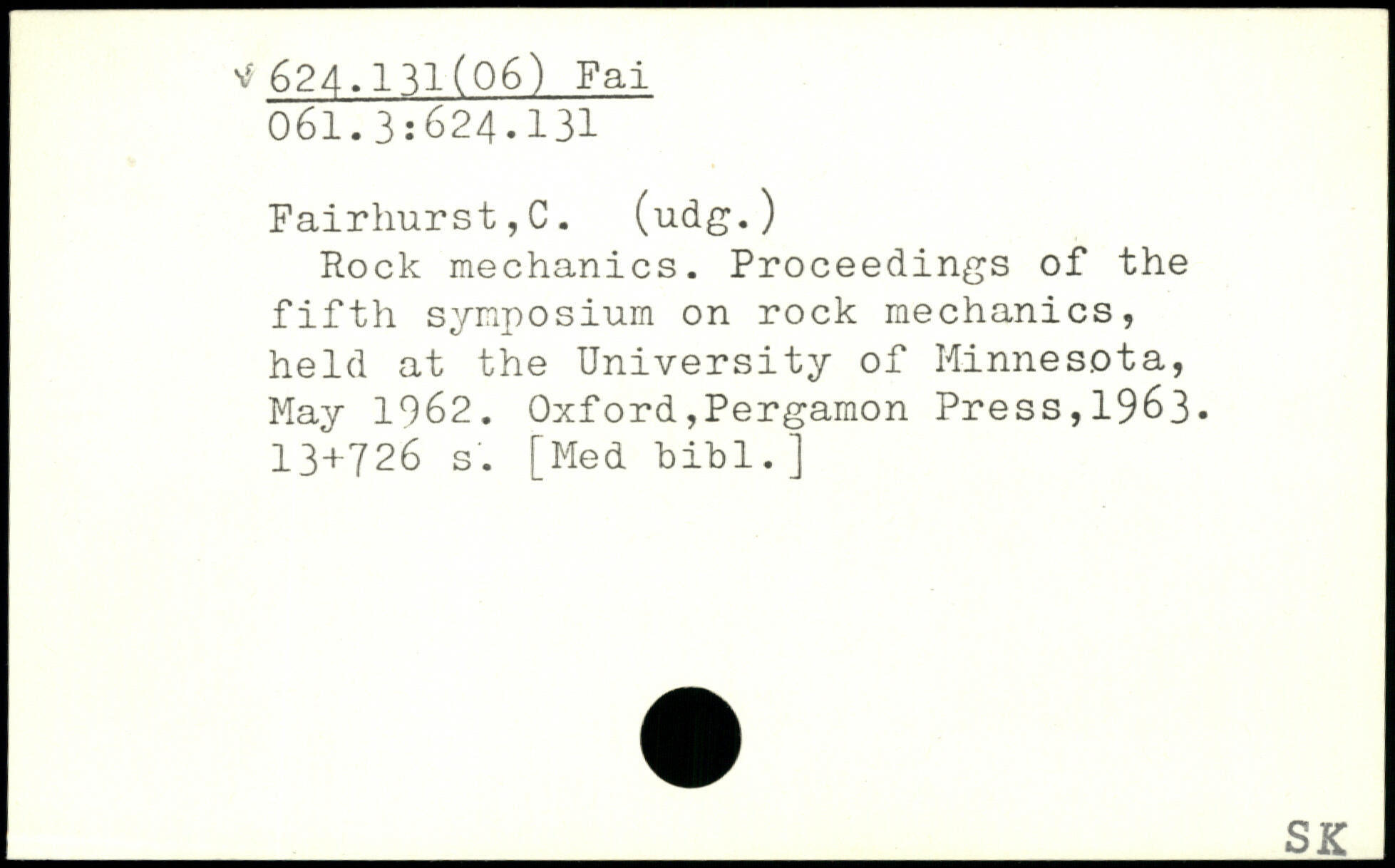 Rock mechanics. Proceedings of the fifth symposium on rock mechanics, held at the University of Minnesota, May 1962.