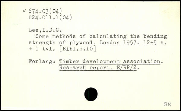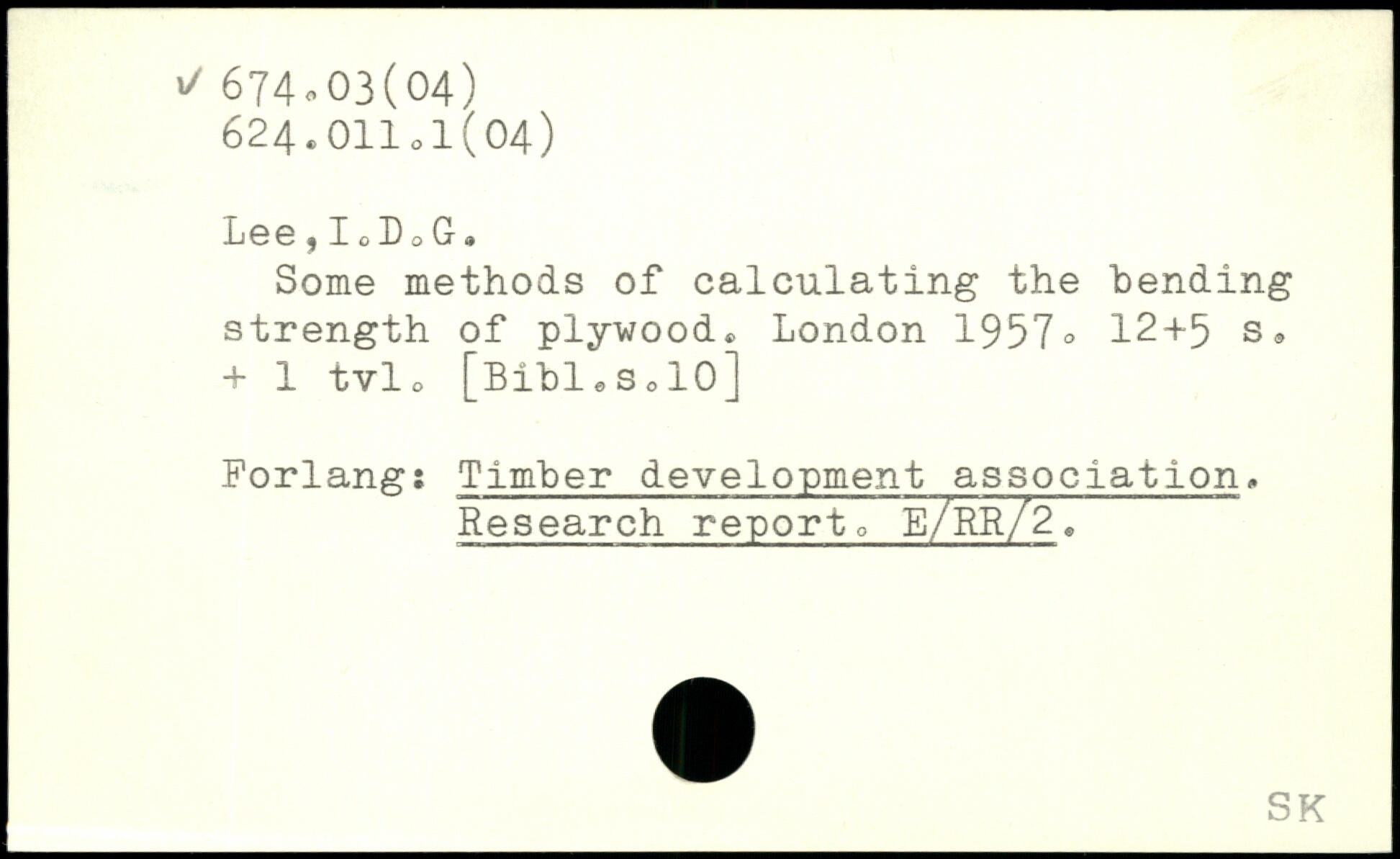 Le 6)IoDoG, Some methods of calculating the bending strength of plywood.