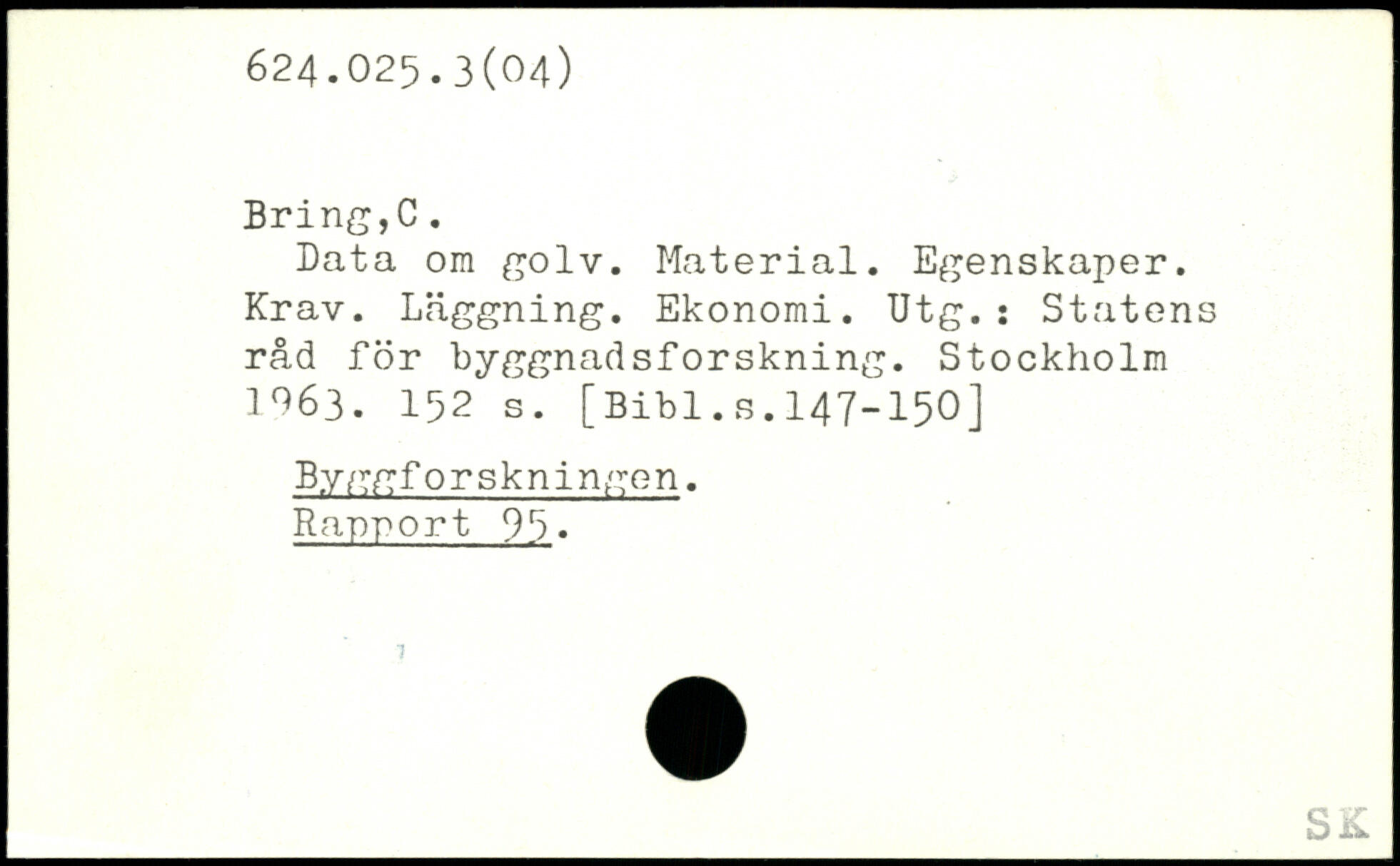 Data om golv. Material. Egenskaper. Krav. Läggning. Ekonomi. Utg.: Statens råd för byggnadsforskning.