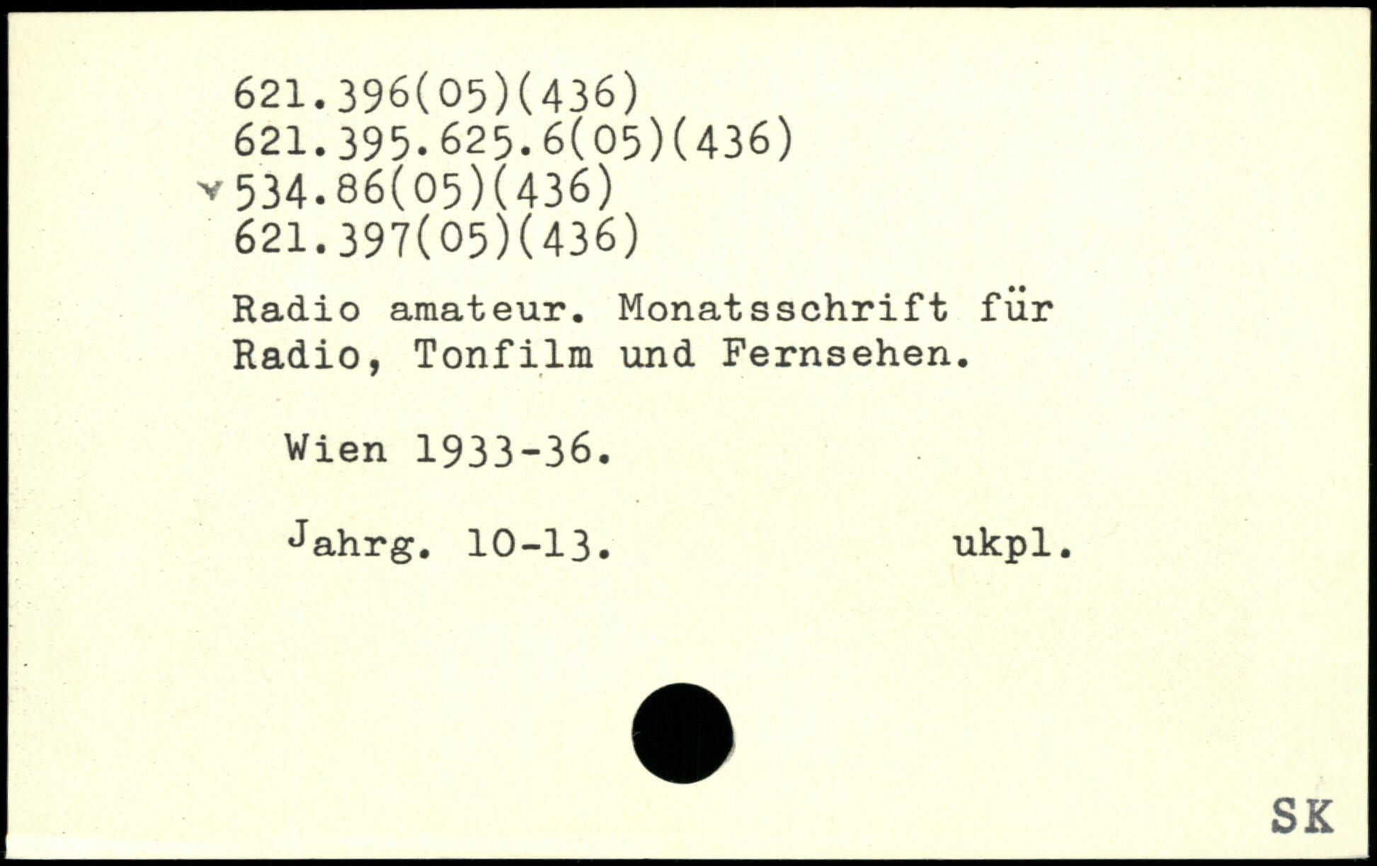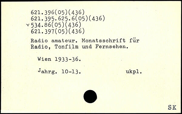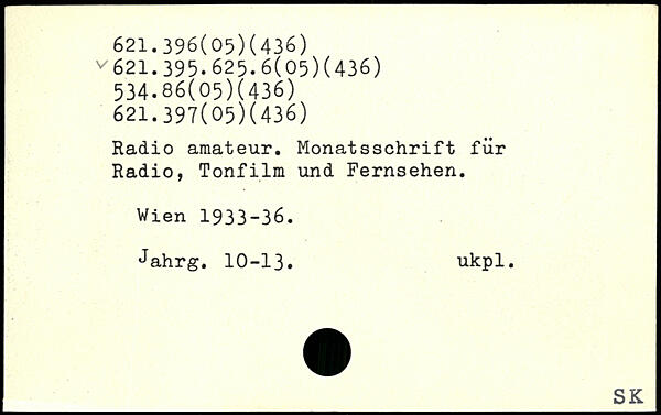 Radio amateur. Monatsschrift für Radio, Tonfilm und Fernsehen.