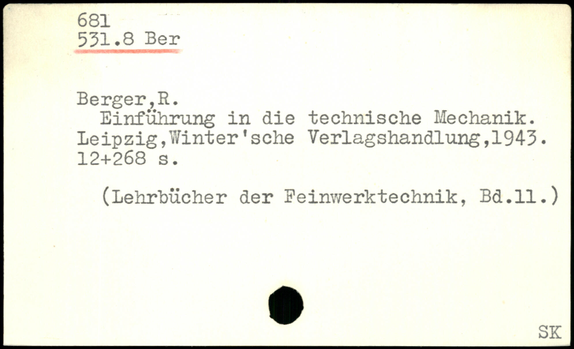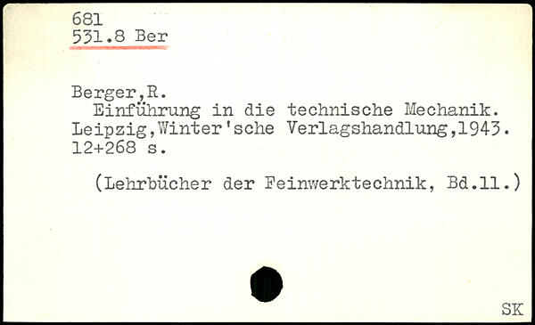 Einführung in die technische Mechanik. Leipzig,Winter'sehe Verlagshandlung,1943.