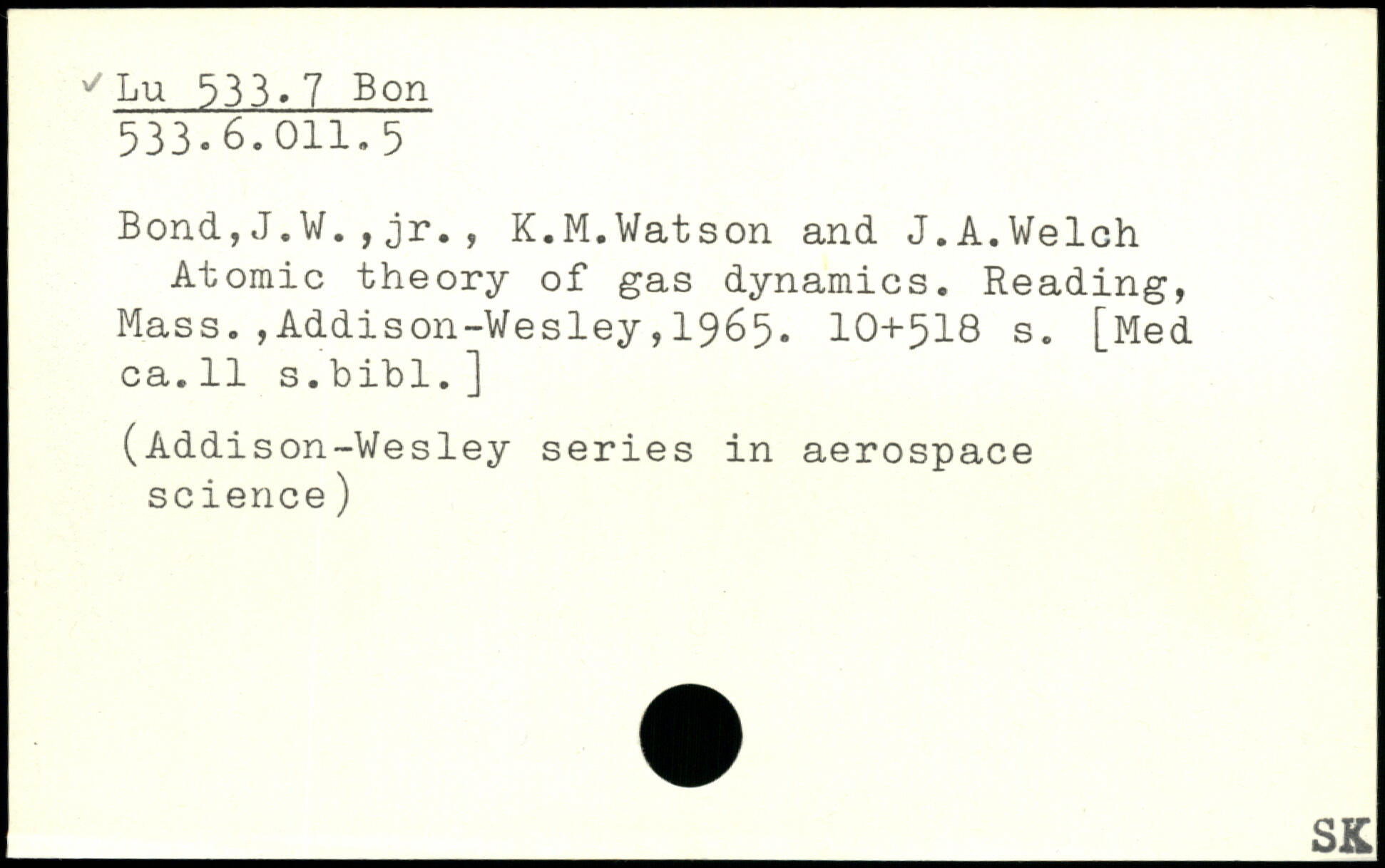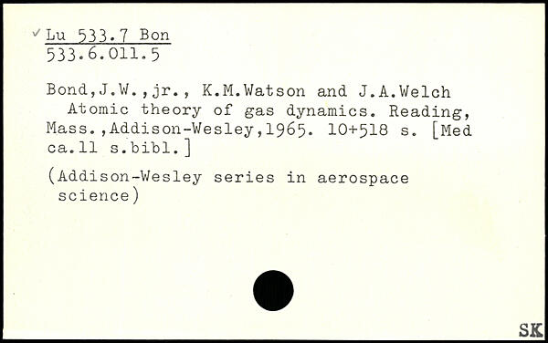 Bond,J.W.,jr. , K.M.Watson and J.A.Welch Atomic theory of gas dynamics.