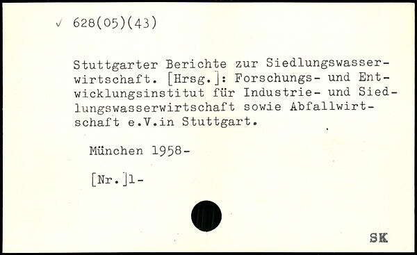 Stuttgarter Berichte zur Siedlungswasserwirtschaft. [Hrsg.]î Forschungs- und Ent-wicklungsinsti tut für Industrie- und Siedlungswasserwirtschaft sowie Abfallwirtschaft e.V.in Stuttgart.