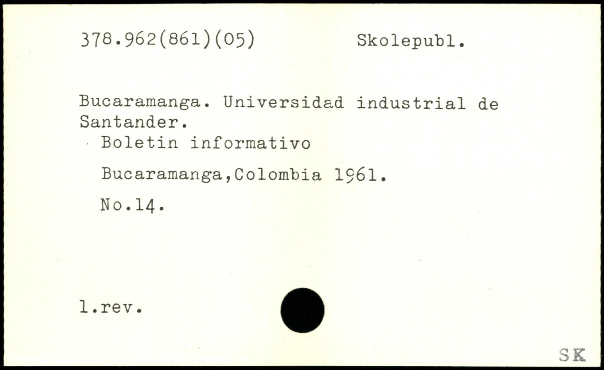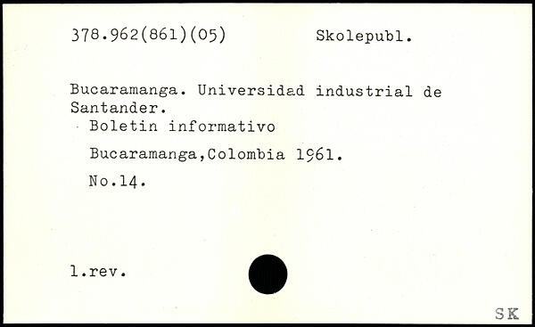 Bucaramanga. Universidad industrial de Santander. Boletin informativo Bucaramanga,Colombia l$6l. No.14.