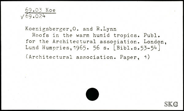 Roofs in the warm humid tropics. Publ. for the Architectural association.
