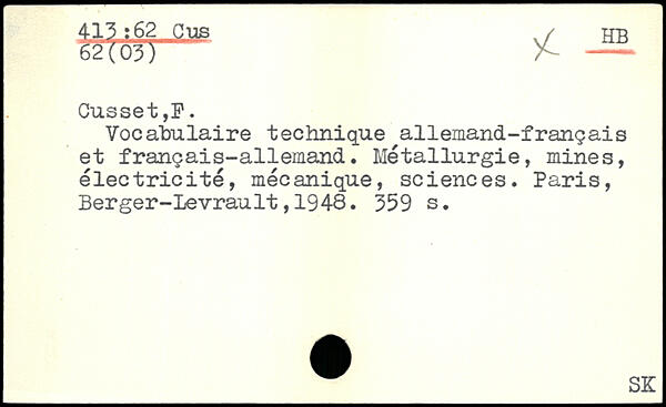 Vocabulaire technique allemand-français et français-allemand. Métallurgie, mines, électricité, mécanique, sciences.
