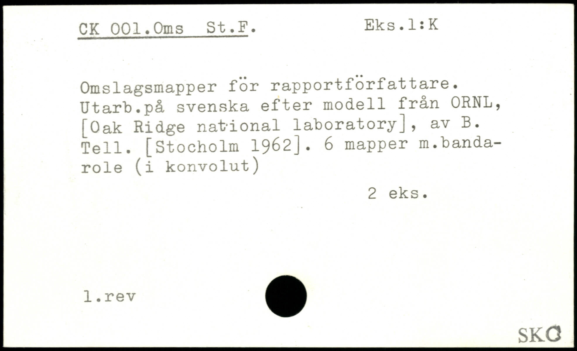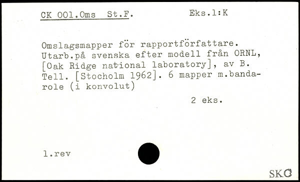 Omslagsmapper for rapportforfattare. Utarb.på svenska efter modeil fran ORNL,