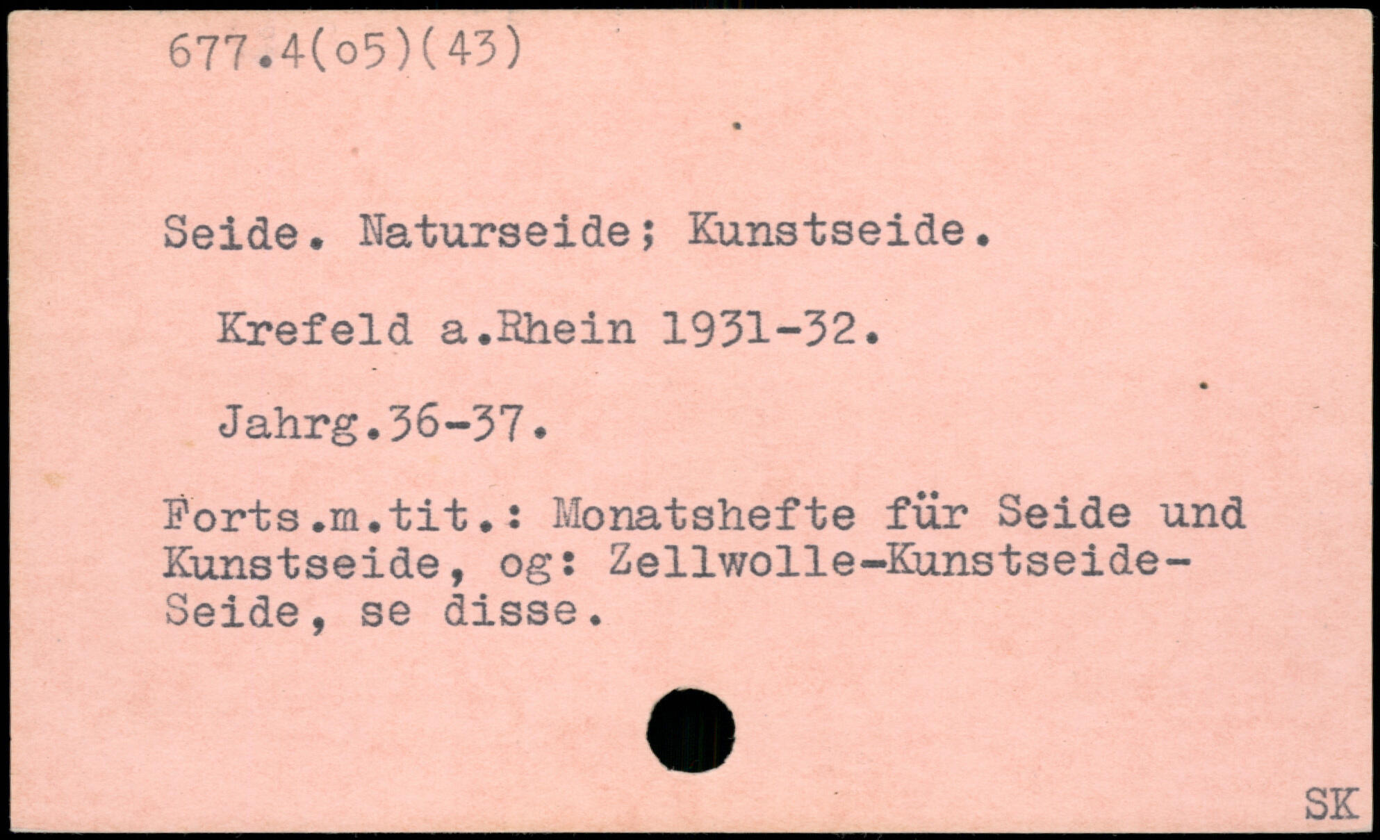Seide. Naturseide; Kunstseide. Krefeld a.Bhein 1931-32. Jahrg.36-37. Ports.m.tit.: Monatshefte für Seide und Kunstseide, og: Zellwolle-Kunstseide-Seide, se disse.