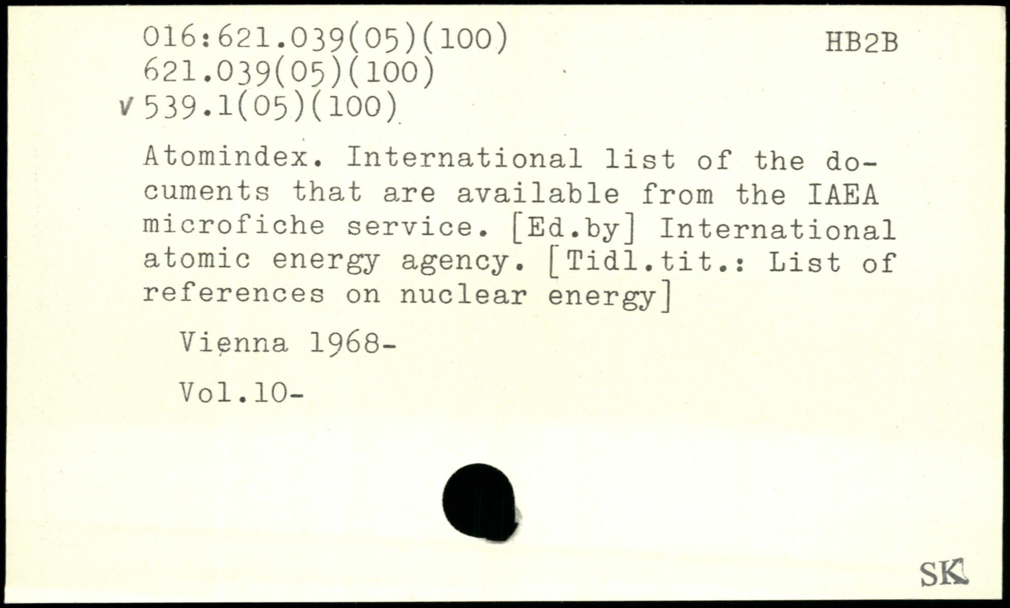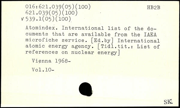 Atomindex. International list of the documents that are available from the IAEA microfiche service. [Ed.by] International atomic energy agency.