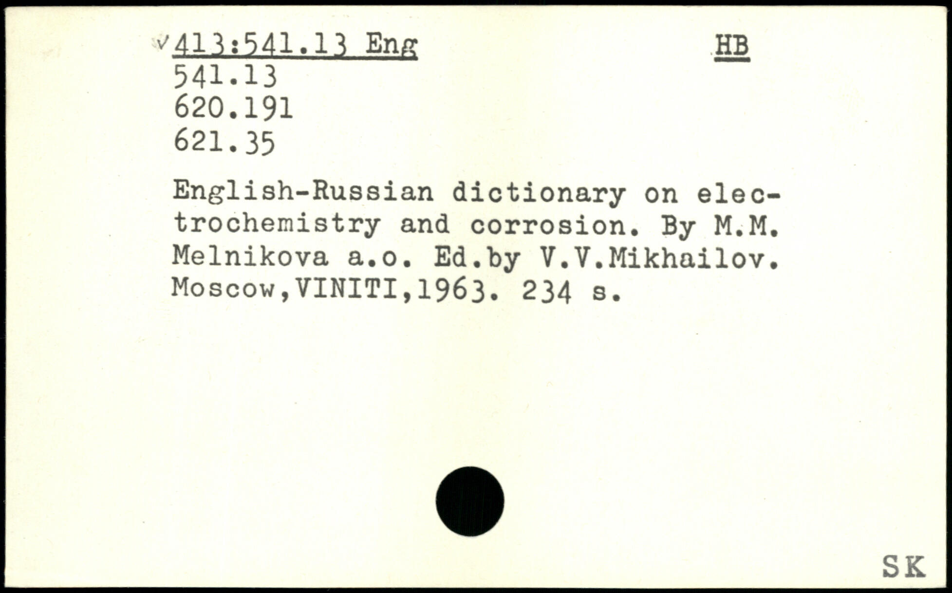 English-Russian dictionary on electrochemistry and corrosion. By M.M. Melnikova a.o. Ed.by V.V.Mikhailov.