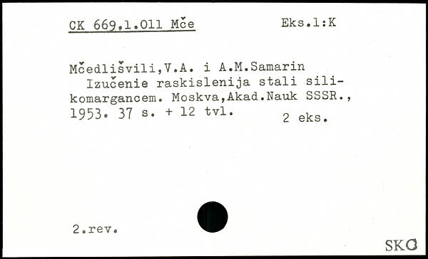 Izucenie raskislenija stali sili-komargancem. Moskva,Akad.Nauk SSSR., 1953.
