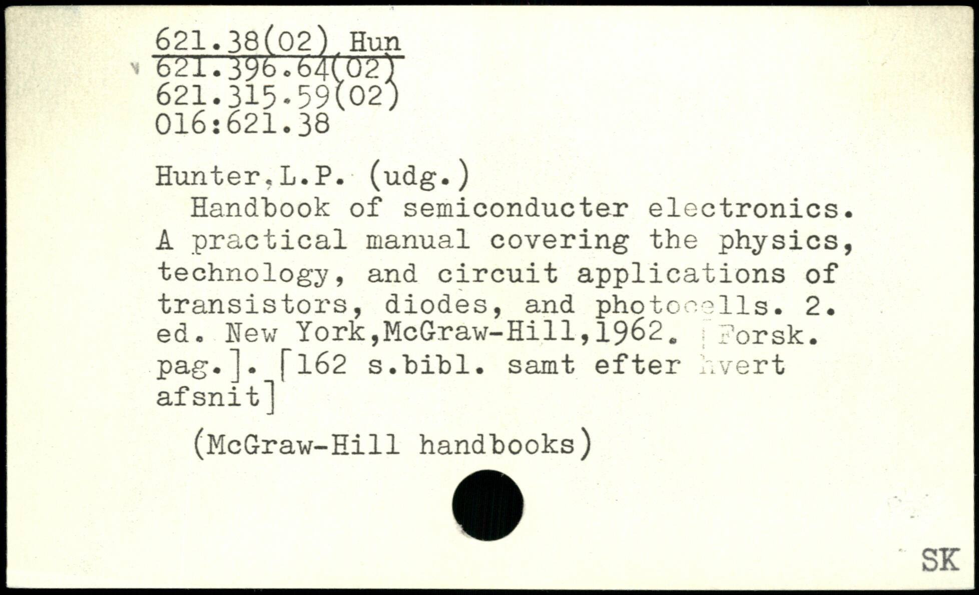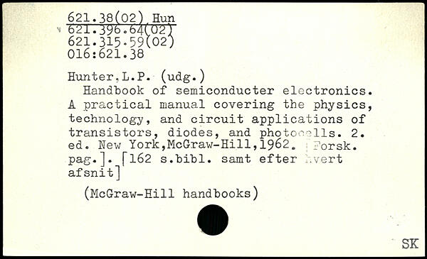 Handbook of semiconducter electronics. A practical manual covering the physics, technology, and circuit applications of transistors, diodes, and photocells.