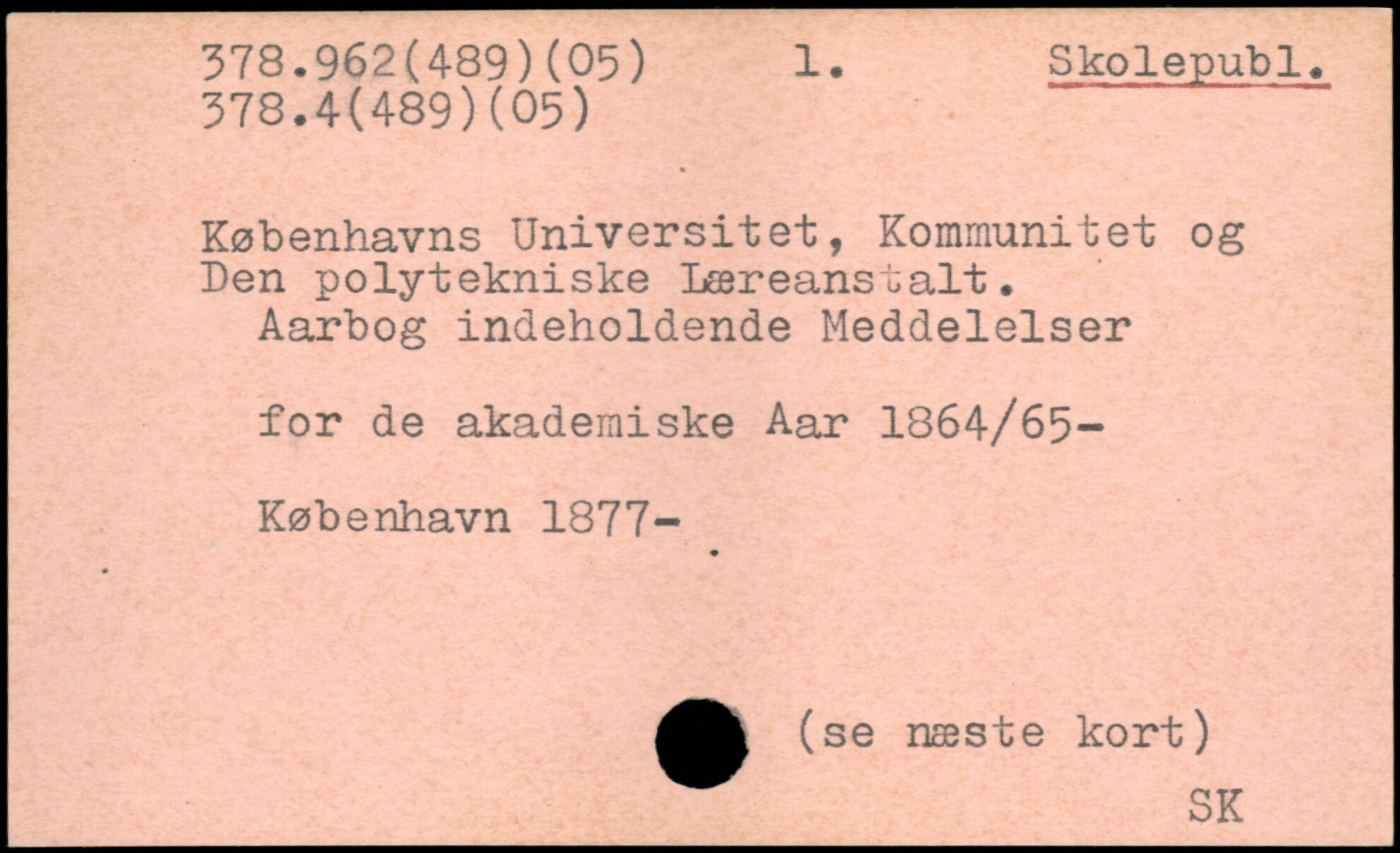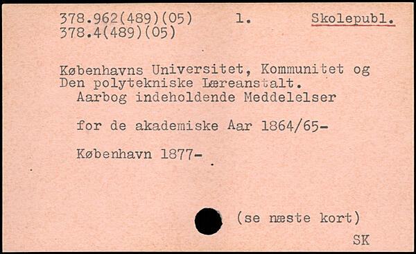 Københavns Universitet, Kommunitet og Den polytekniske Læreanstalt. Aarbog indeholdende Meddelelser for de akademiske Aar 1864/65-