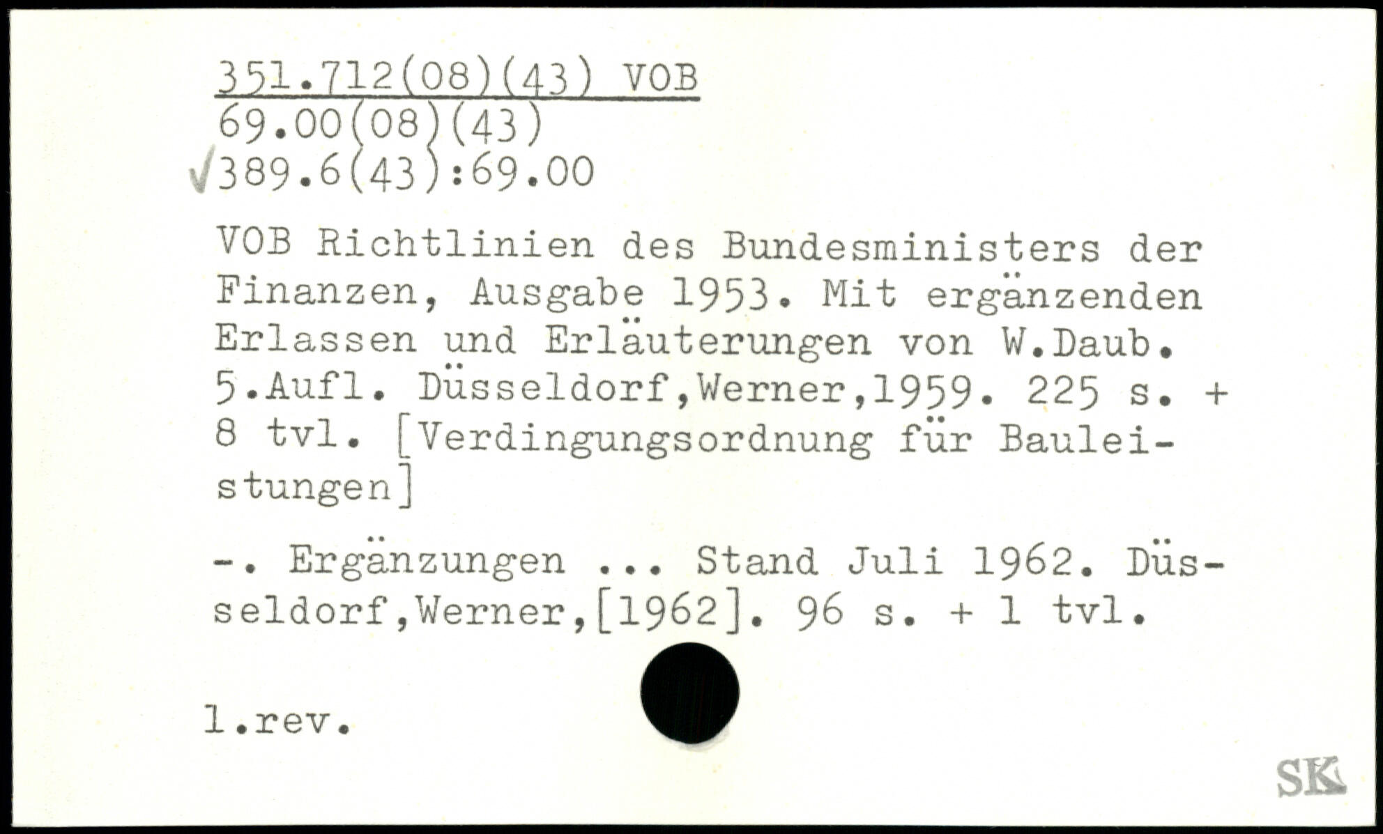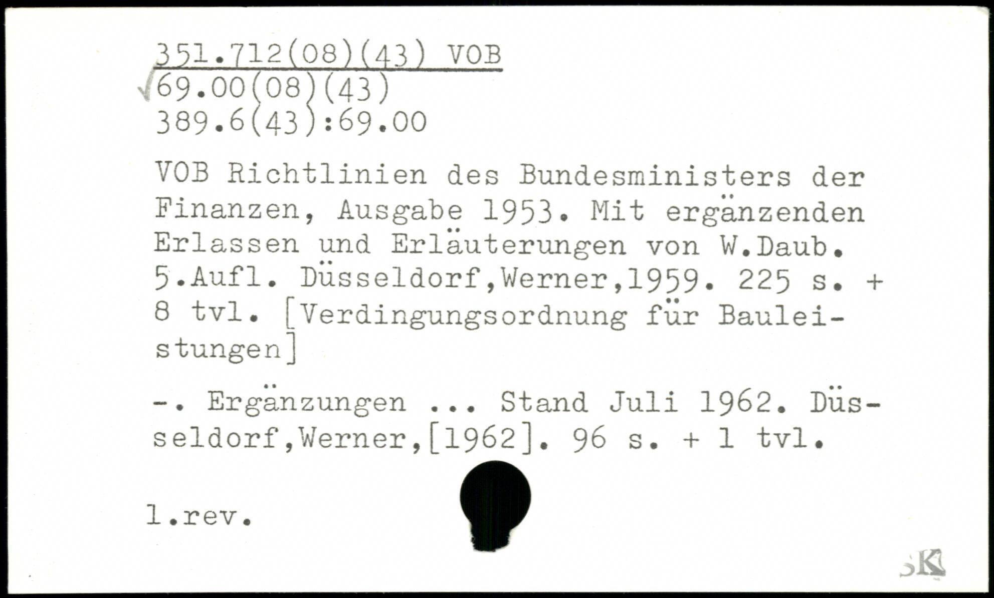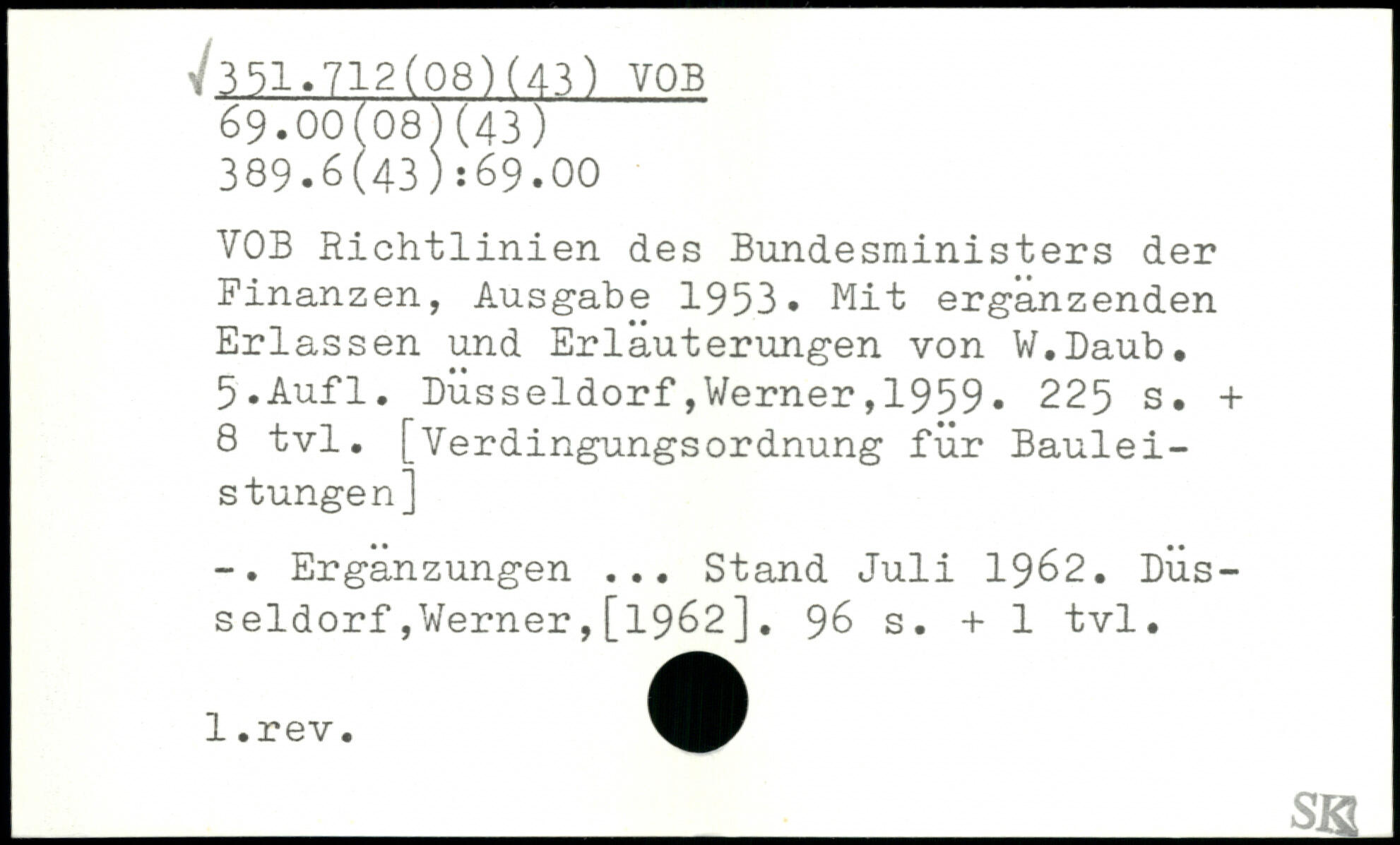 VOB Richtlinien des Bundesministers der Finanzen, Ausgabe 1953. Mit ergänzenden Erlassen und Erläuterungen von W.Daub.