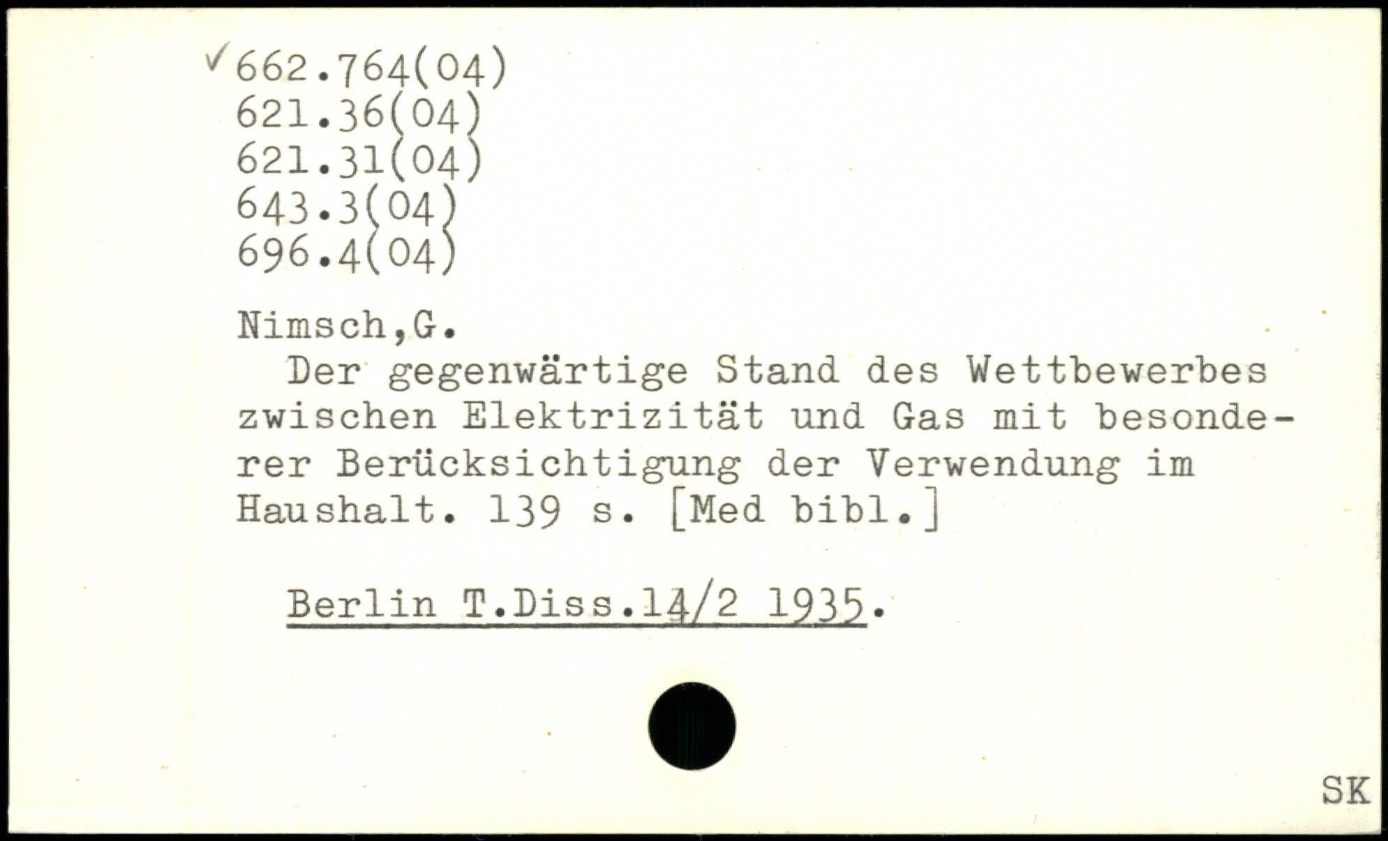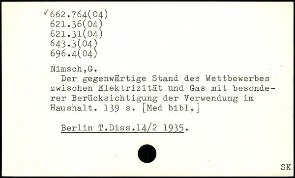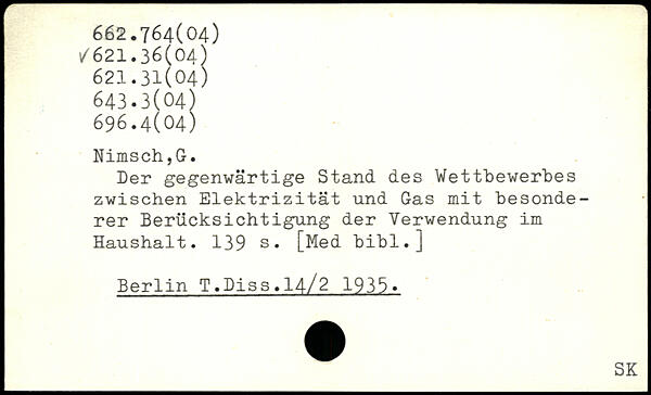 Der gegenwärtige Stand des Wettbewerbes zwischen Elektrizität und Gas mit besonderer Berücksichtigung der Verwendung im Haushalt.