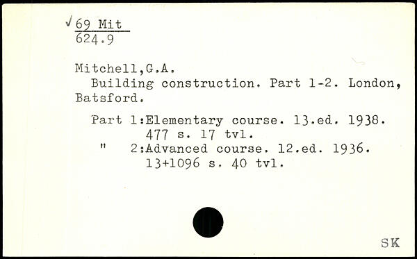 Building construction. Part 1-2. London, Batsford. Part 1 :Elementary course.