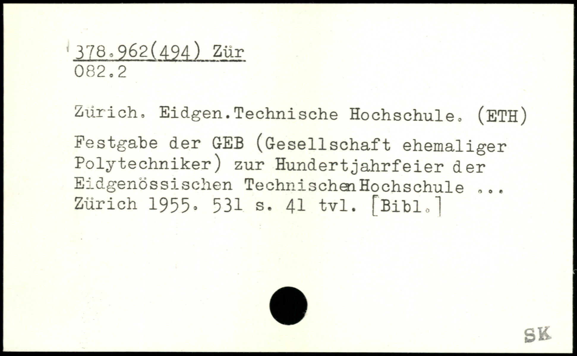 Zürich, Eidgen.Technische Hochschule. (ETH) Festgabe der GEB (Gesellschaft ehemaliger Polytechniker) zur Hundertjahrfeier der Eidgenössischen TechnischenHochschule ... Zürich 1955