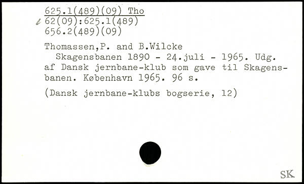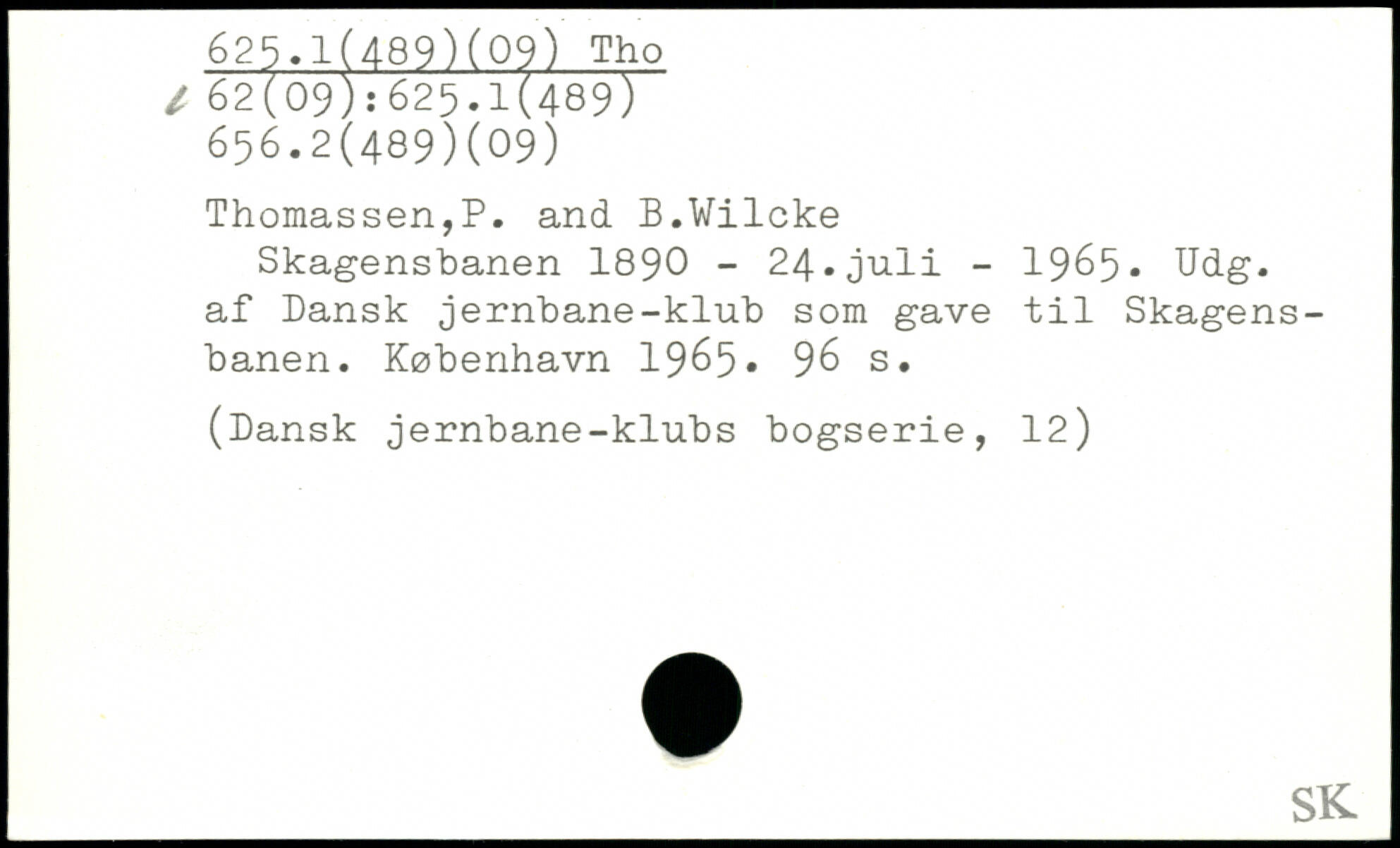 Skagensbanen 1890 - 24,juli - 1965- Udg. af Dansk jernbane-klub som gave til Skagensbanen.