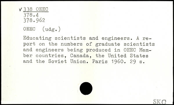 Educating scientists and engineers. A report on the numbers of graduate scientists and engineers being produced in OEEC Member countries, Canada, the United States and the Soviet Union.