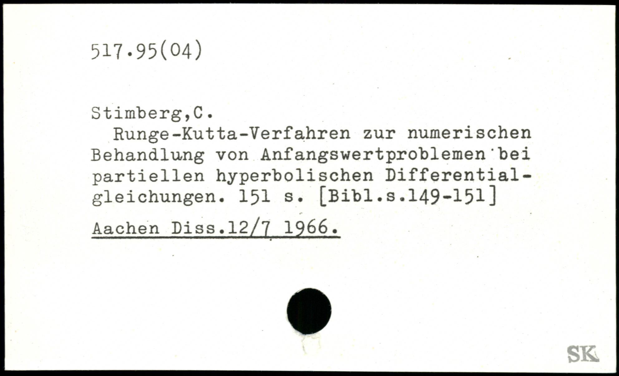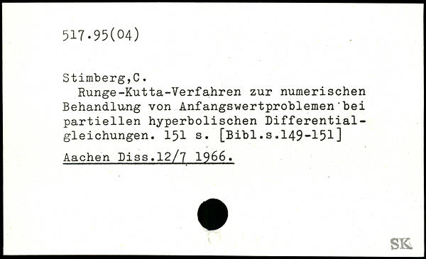 Runge-Kutta-Verfahren zur numerischen Behandlung von Anfangswertproblemen'bei partiellen hyperbolischen Differential-gleichungen.