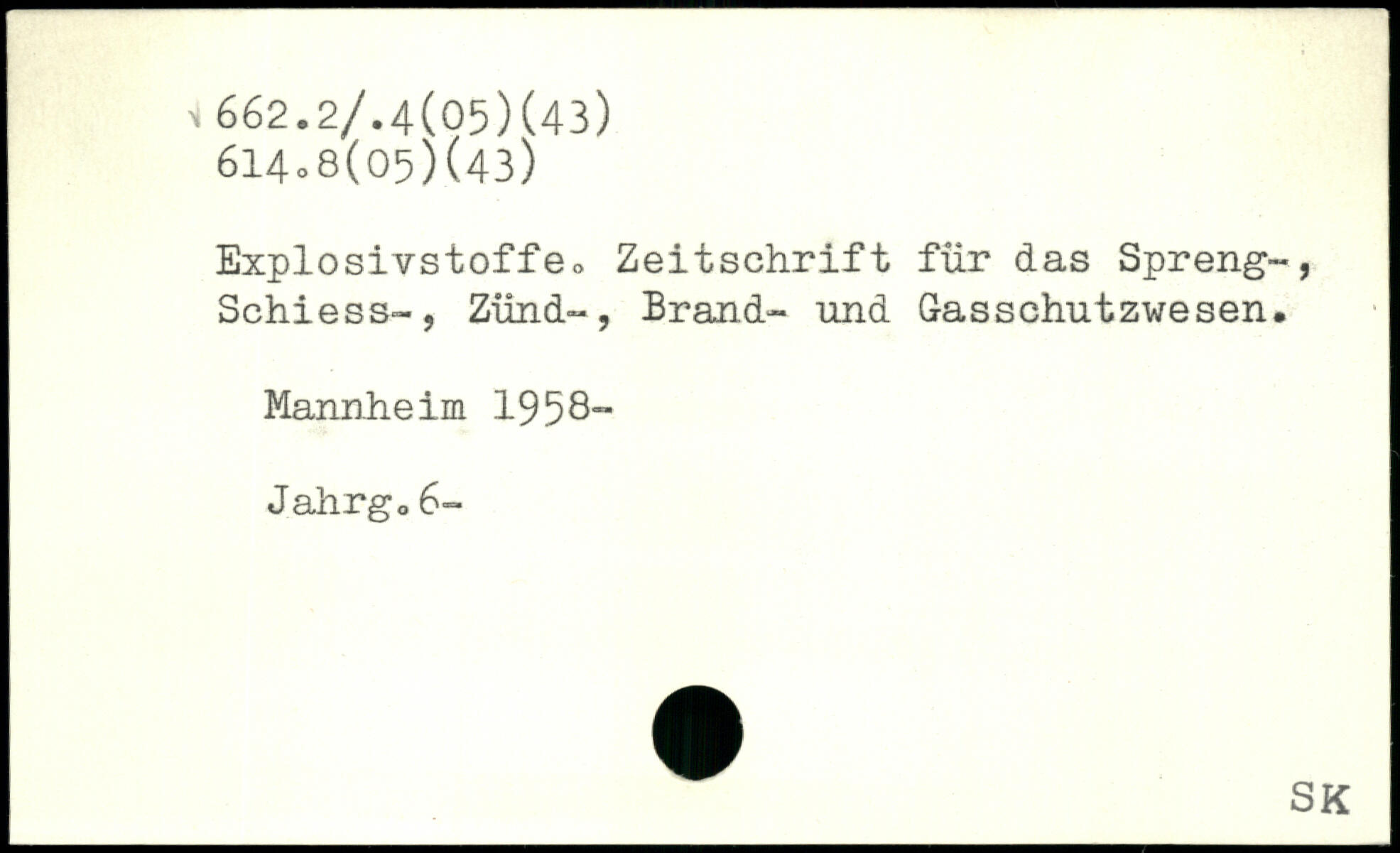 Explosivstoffe, Zeitschrift für das Spreng-, Schiess-, Zünd-, Brand- und Gasschutzwesen. ä Mannhe im 19 5 8- Jahrgo 6-