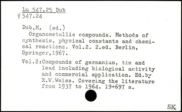 Organometallie compounds. Methods of synthesis, physical constants and chemical reactions.