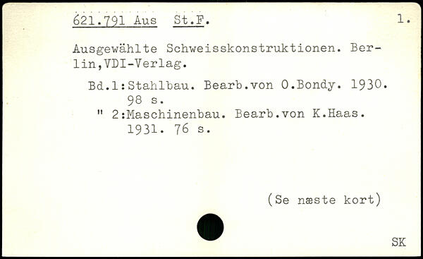 Ausgewählte Schweisskonstruktionen. Berlin ,VDI -Verlag. Bd.l:Stahlbau. Bearb.von 0.Bondy. 1930.
