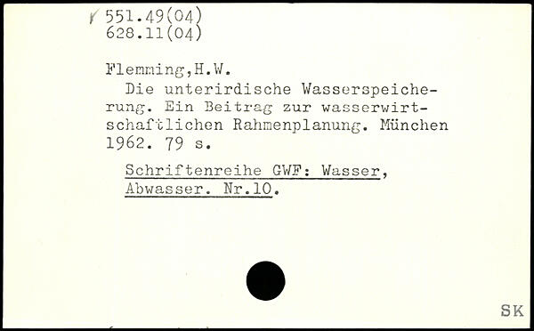 Die unterirdische Wasserspeicherung-. Ein Beitrag zur wasserwirtschaftlichen Rahmenplanung.