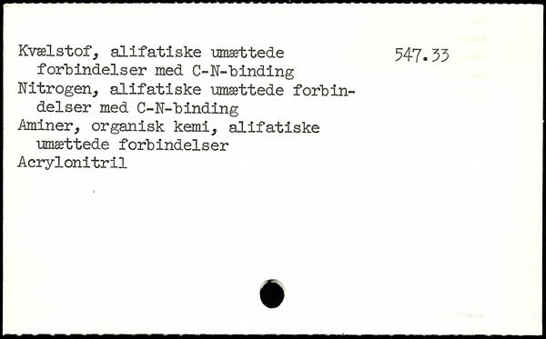 Kvælstof, alifatiske umættede 547.33 forbindelser med C-N-binding Nitrogen, alifatiske umættede forbindelser med C-N-binding Aminer, organisk kemi, alifatiske umættede forbindelser Acrylonitril