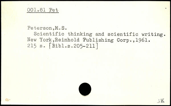 Scientific thinking and scientific writing. New YorkjPeinhold Publishing Corp.,1961.