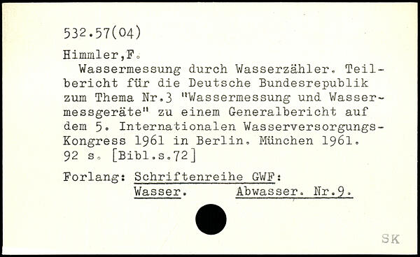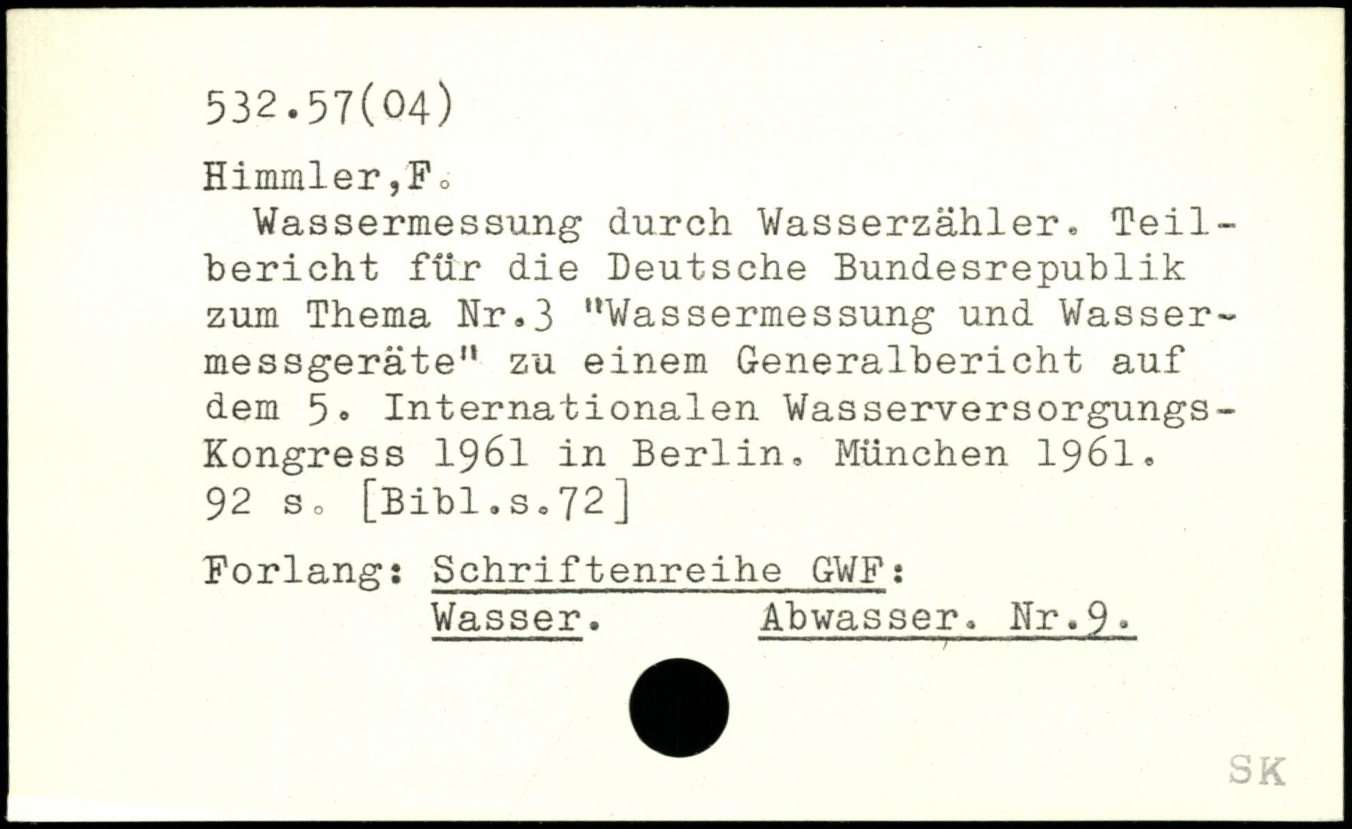 Wassermessung durch. Wasserzähler. Teilbericht für die Deutsche Bundesrepublik zum Thema Nr.3 ‘'Wassermessung und Wasser-messgeräte" zu einem Generalbericht auf dem 5, Internationalen Wasserversorgungs-Kongress 1961 in Berlin.