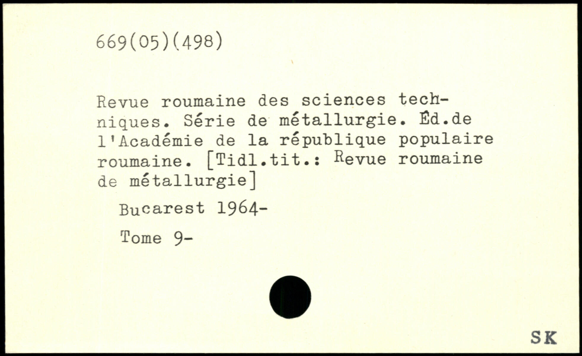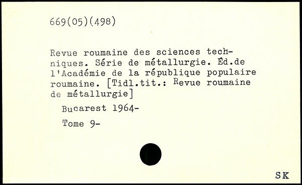 Revue roumaine des sciences techniques. Série de métallurgie. Ëd.de l’Académie de la république populaire roumaine. [Tidl.tit.s Revue roumaine de métallurgie]