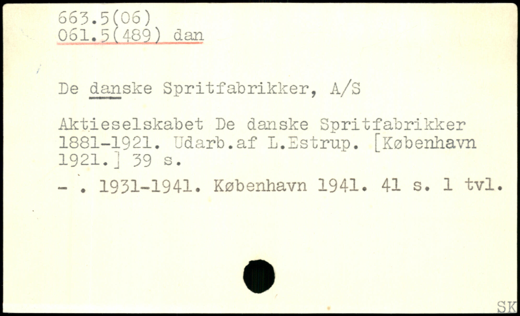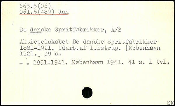 De danske Spritfabrikker, A/S Aktieselskabet De danske Spritfabrikker 1881-1921. Udarb.af L.Estrup.