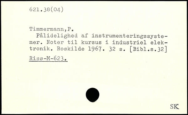 Pålidelighed af instrumenteringssystemer. Noter til kursus i industriel elektronik. Roskilde 1967.
