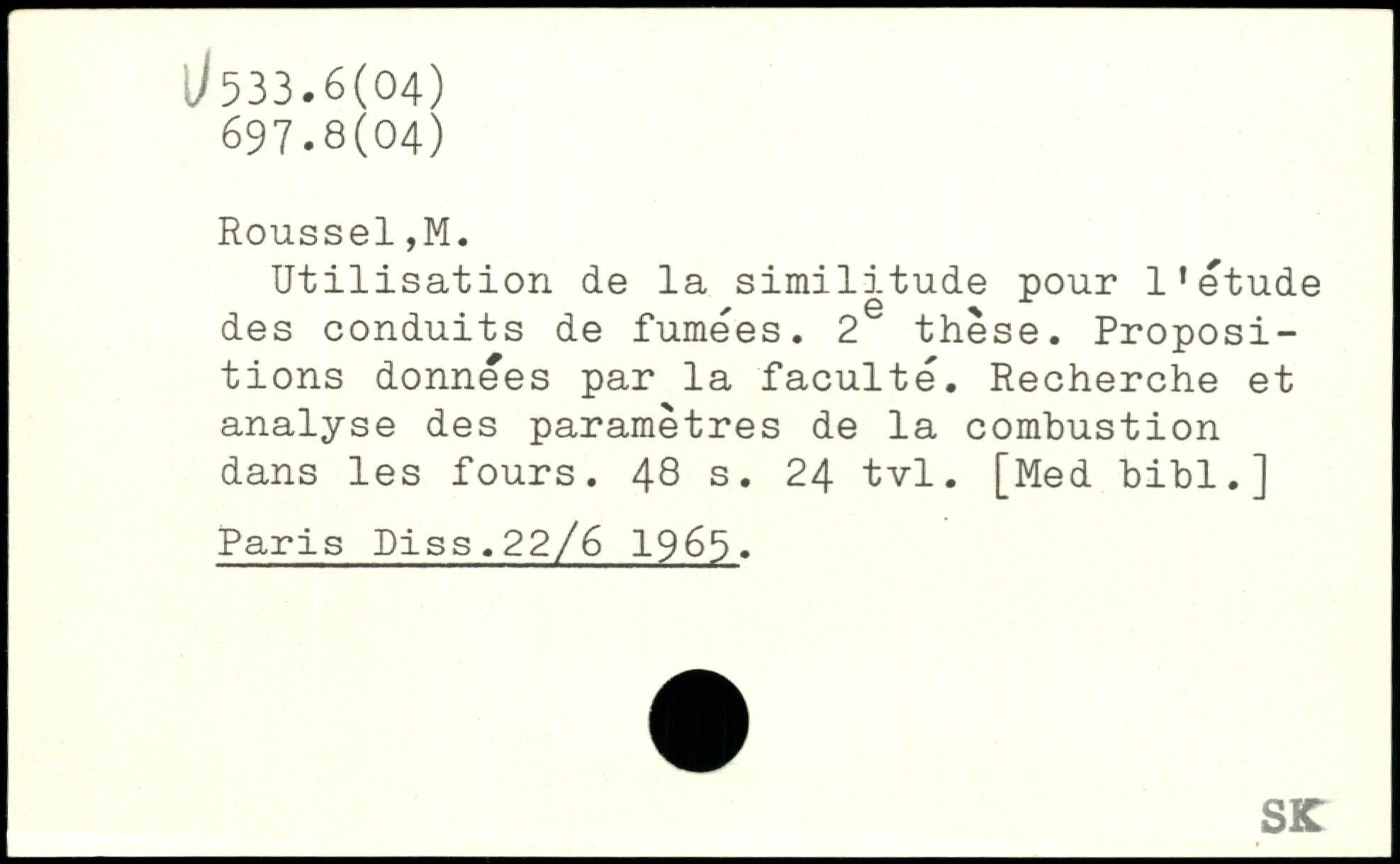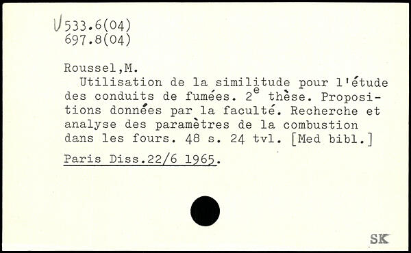 Utilisation de la similitude pour 11 etude des conduits de fumées. 2 thèse. Propositions données par la faculté. Recherche et analyse des paramètres de la combustion dans les fours.