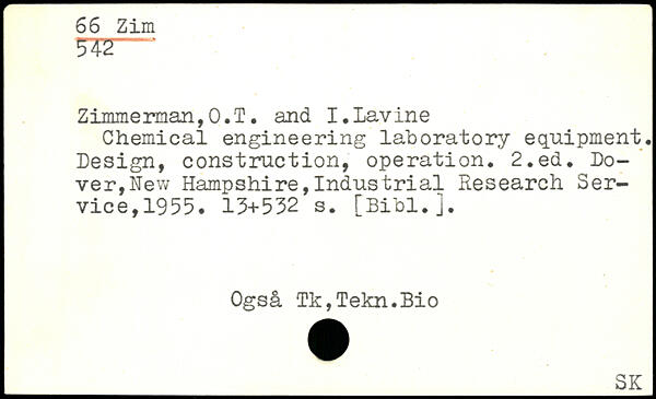 Zimmerman, O.T. and I .Lavine Chemical engineering laboratory equipment. Design, construction, operation.