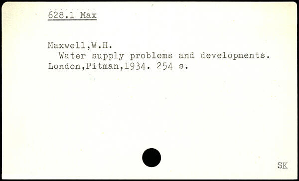 Water supply problems and developments.