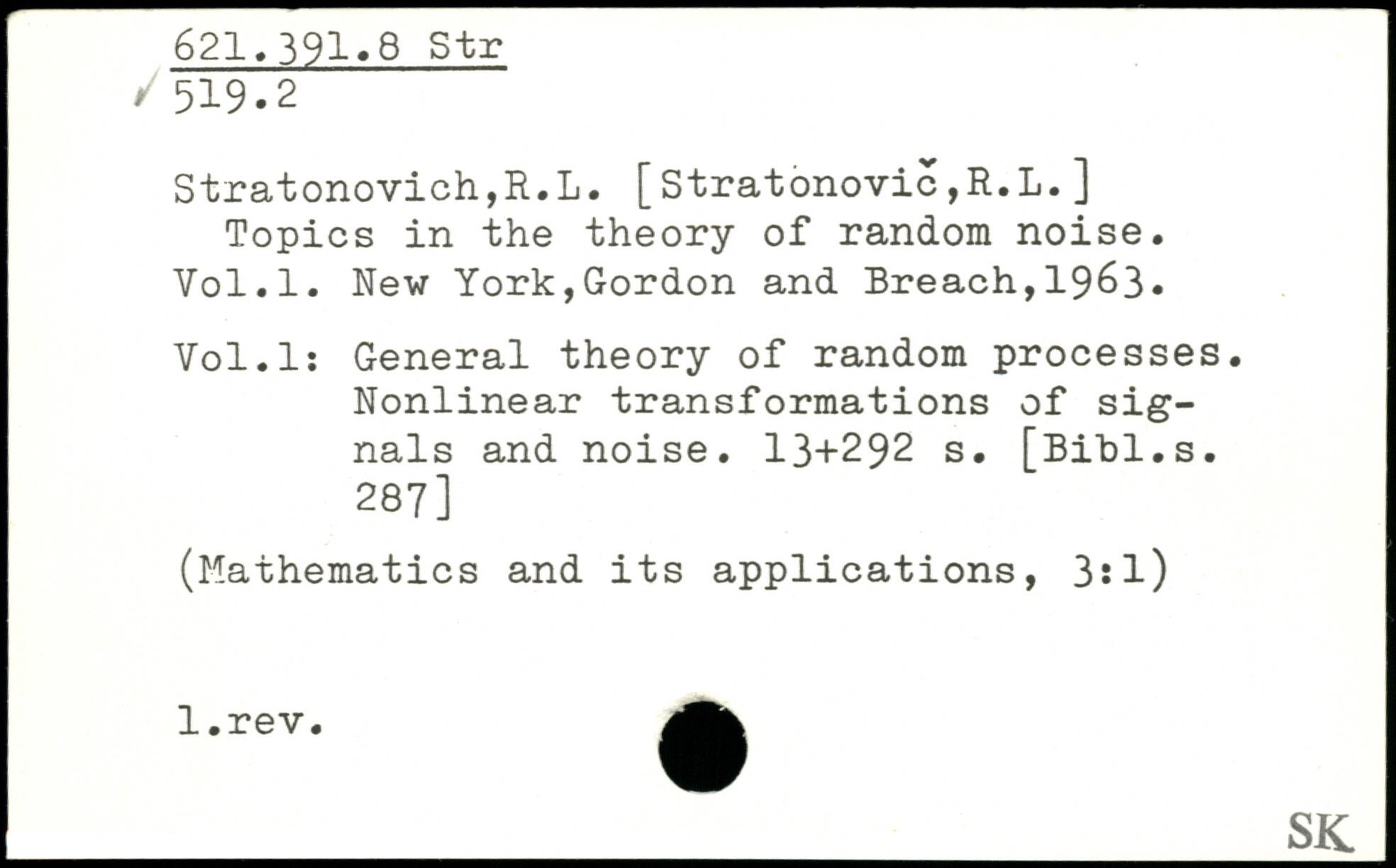 Stratonovich,R.L. [Stratonovic,R.L.] Topics in the theory of random noise.
