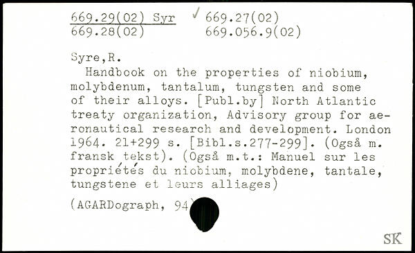 UDK: 669.29(02) Syr, 669.27(02), 669.28(02), 669.056.9(02)