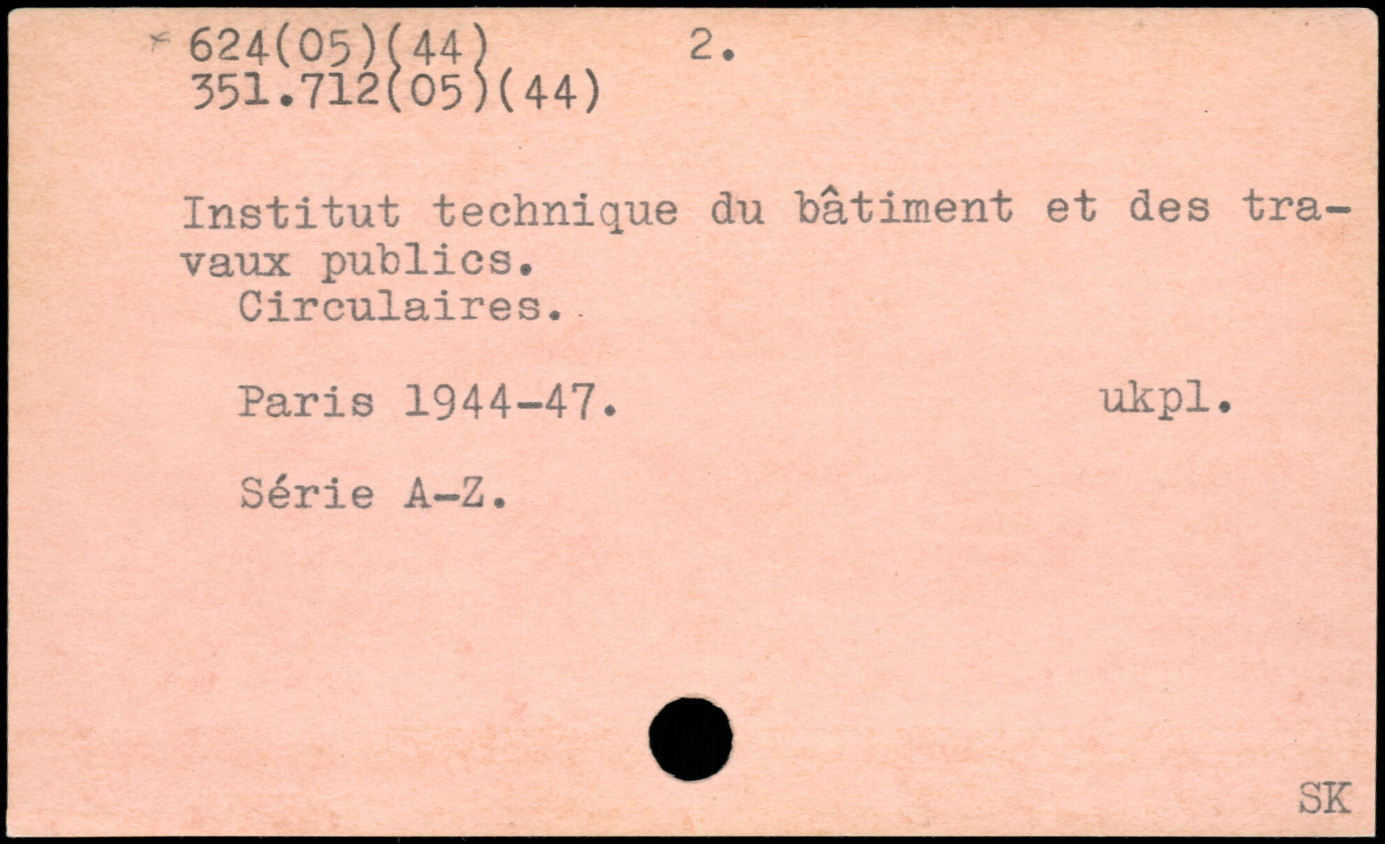Institut technique du bâtiment et des travaux publics. Circulaires.