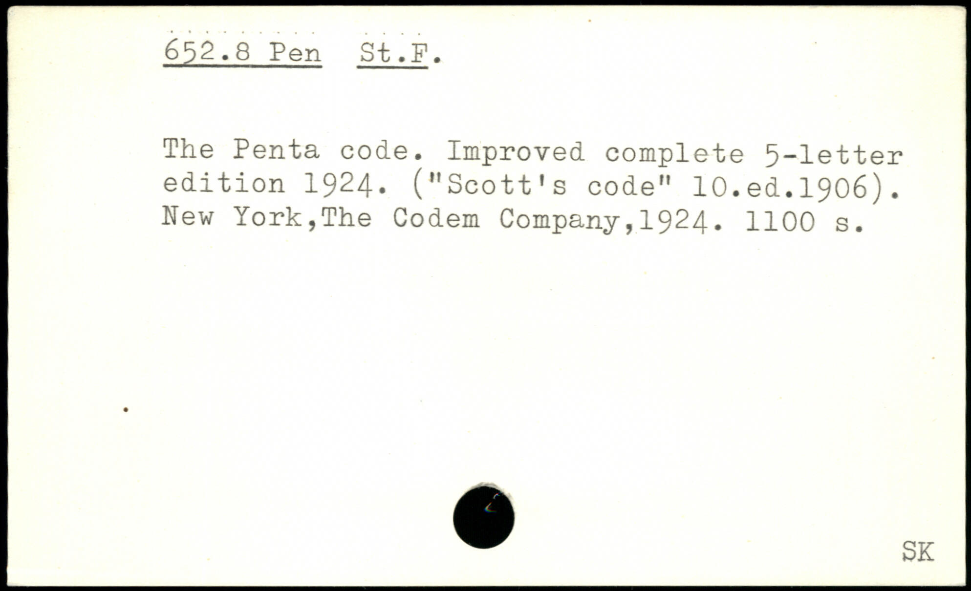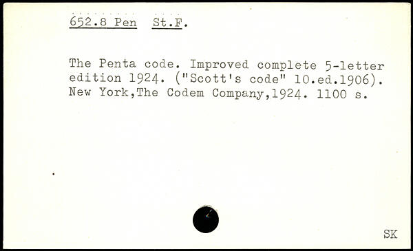 The Penta code. Improved complete 5-letter edition 1924. (”Scott’s code” lO.ed.1906).