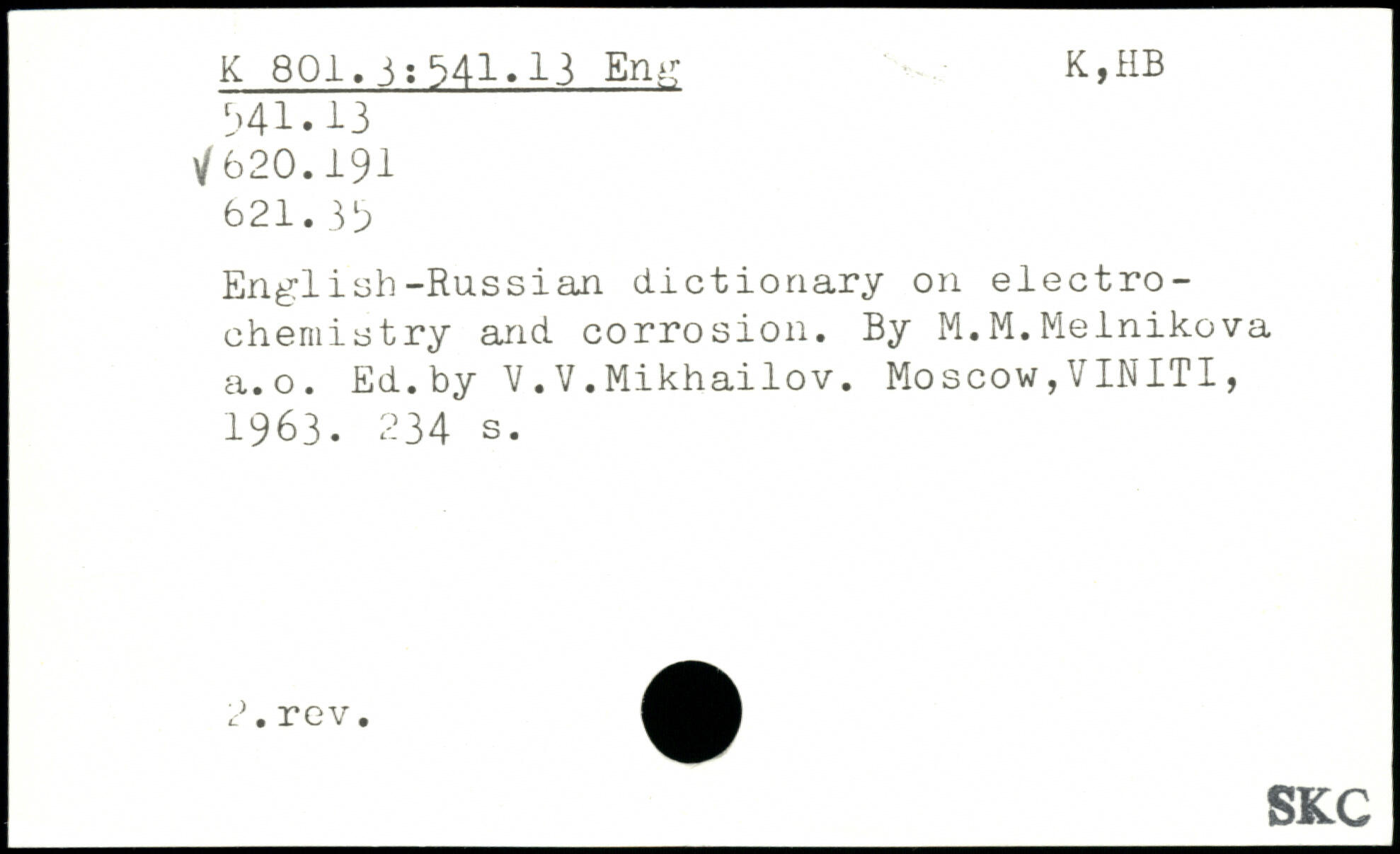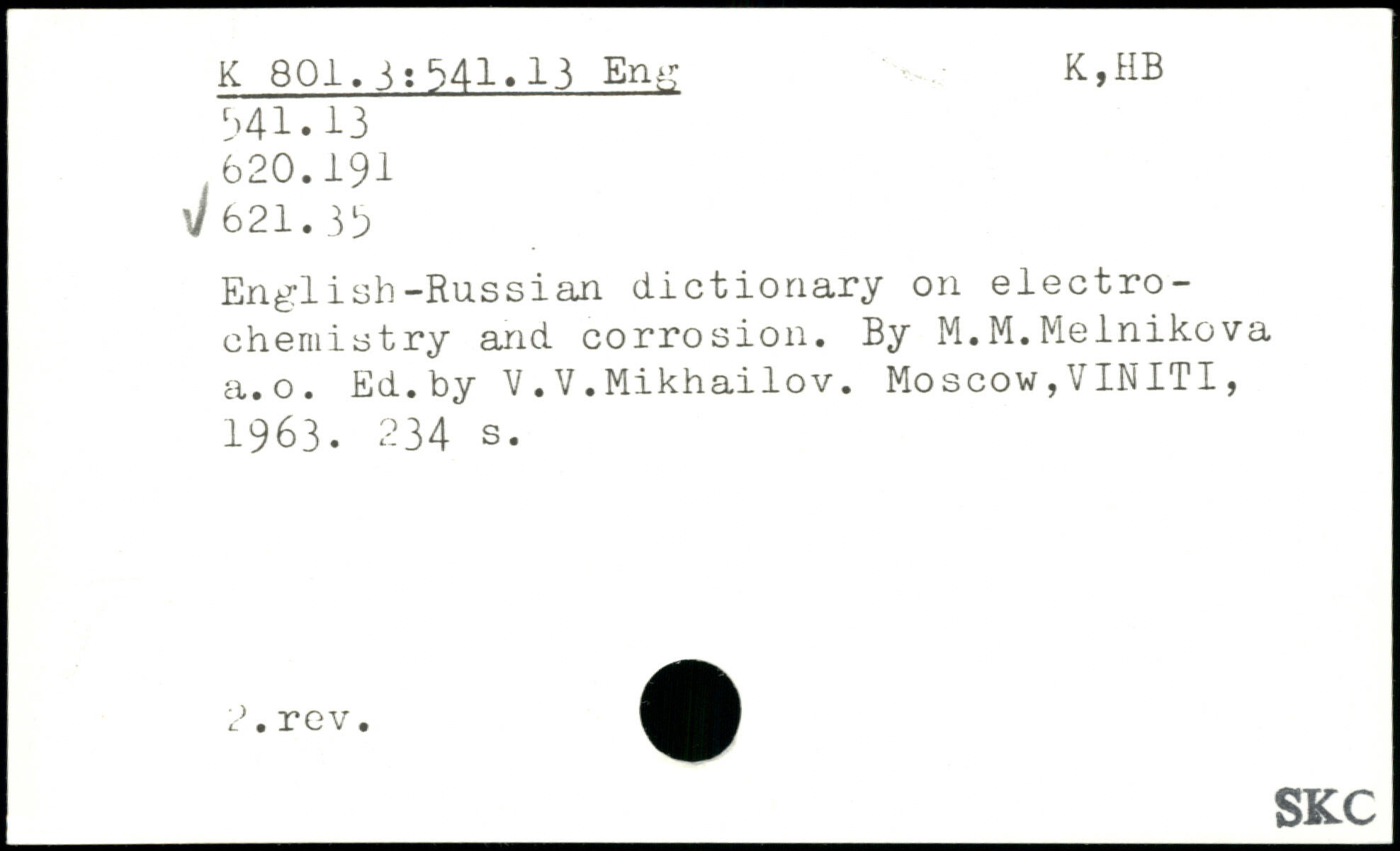 English-Russian dictionary on electrochemistry and corrosion. By M.M.Melnikova a.o. Ed.by V.V.Mikhailov.