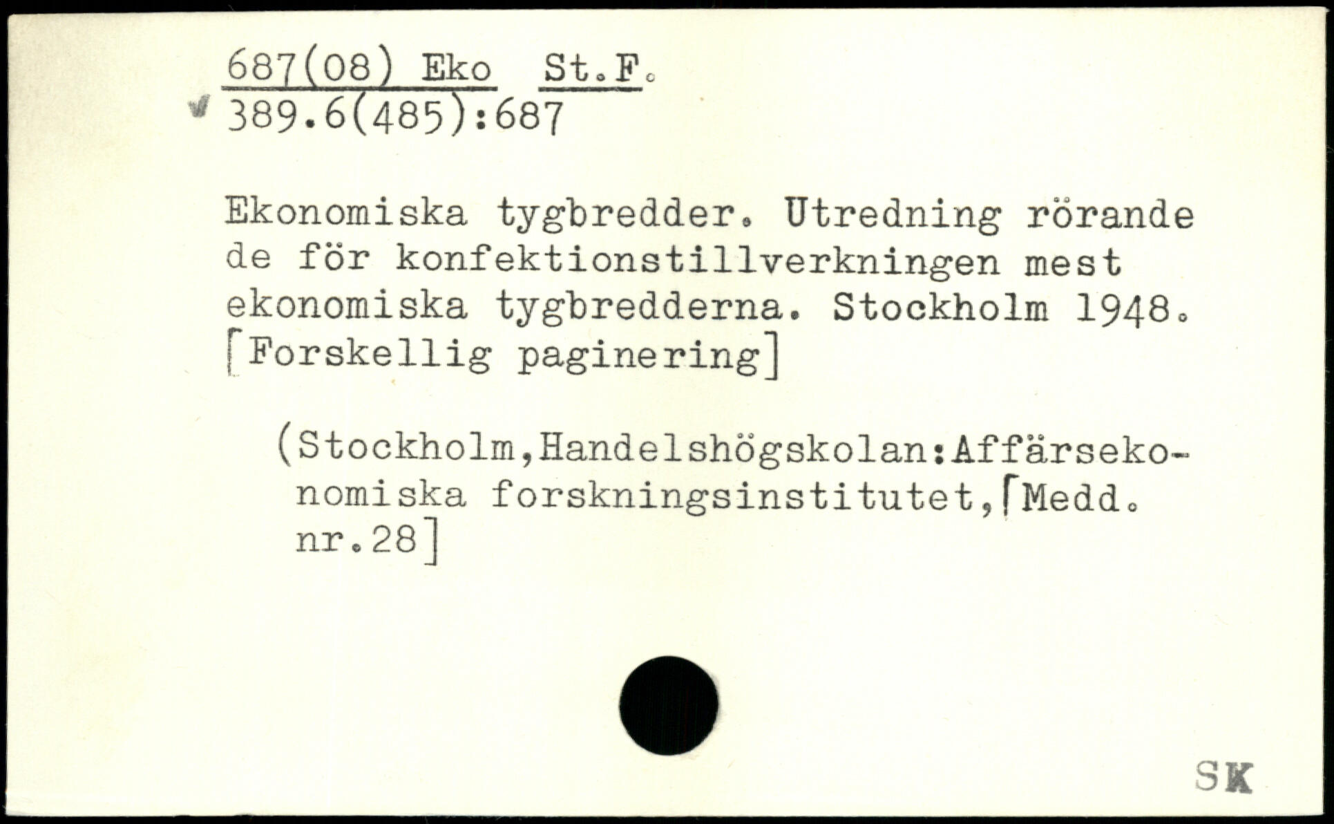 Ekonomiska tygkredder. Utredning rörande de for konfektionstillverkningen mest ekonomiska tygkredderna.