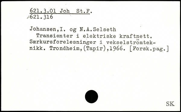 Transienter i elektriske kraftnett. Sserkursforelesninger i vekselstromtek-nikk. Trondheim,(Tapir),1966. [Forsk.pag.]