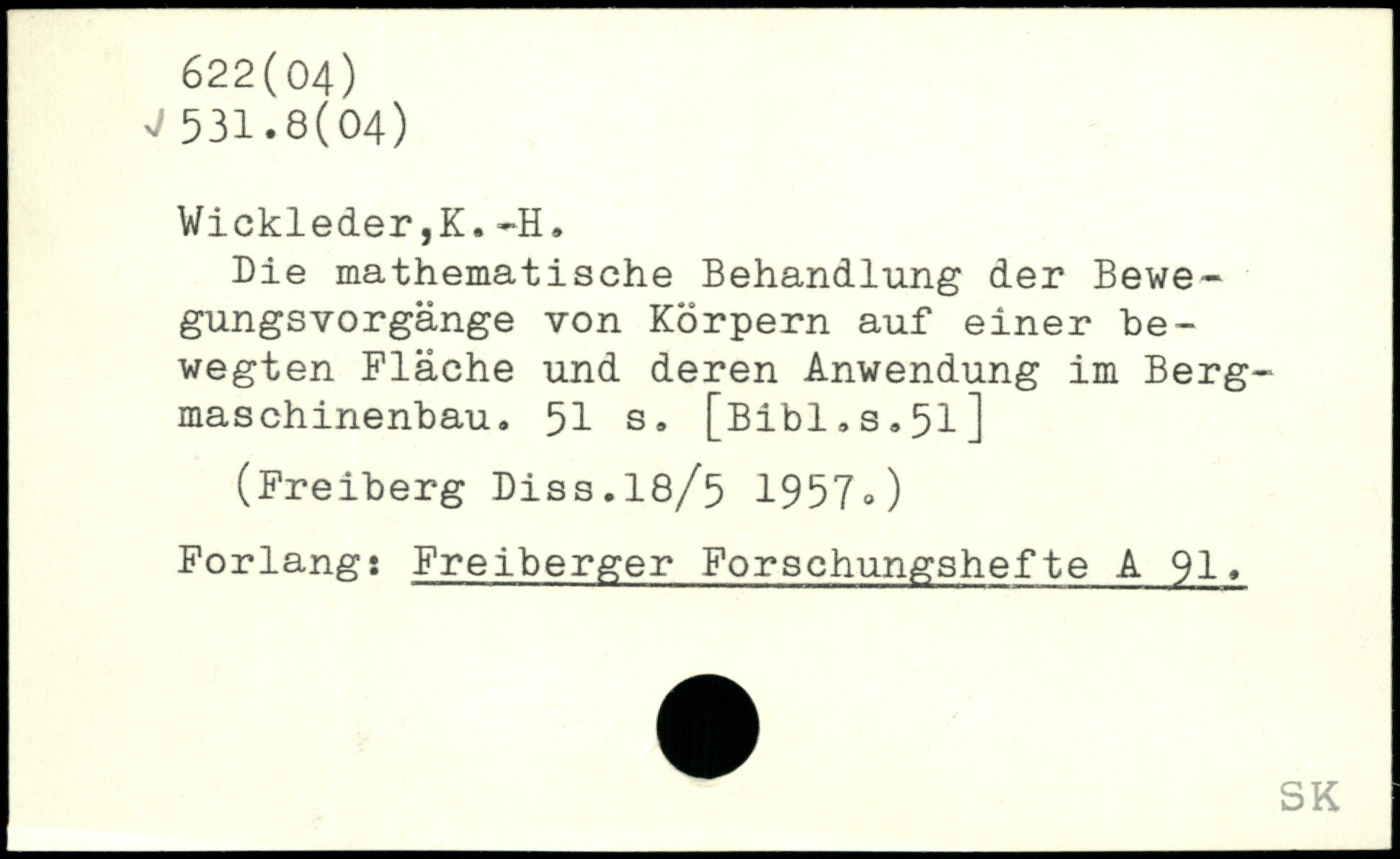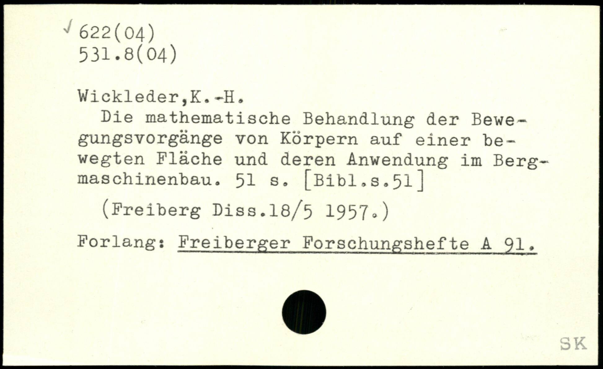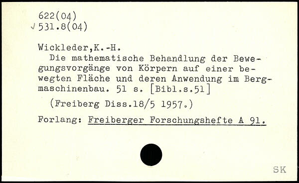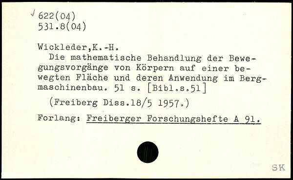 Die mathematische Behandlung der Bewegungsvorgänge von Körpern auf einer bewegten Fläche und deren Anwendung im Bergmaschinenbau.