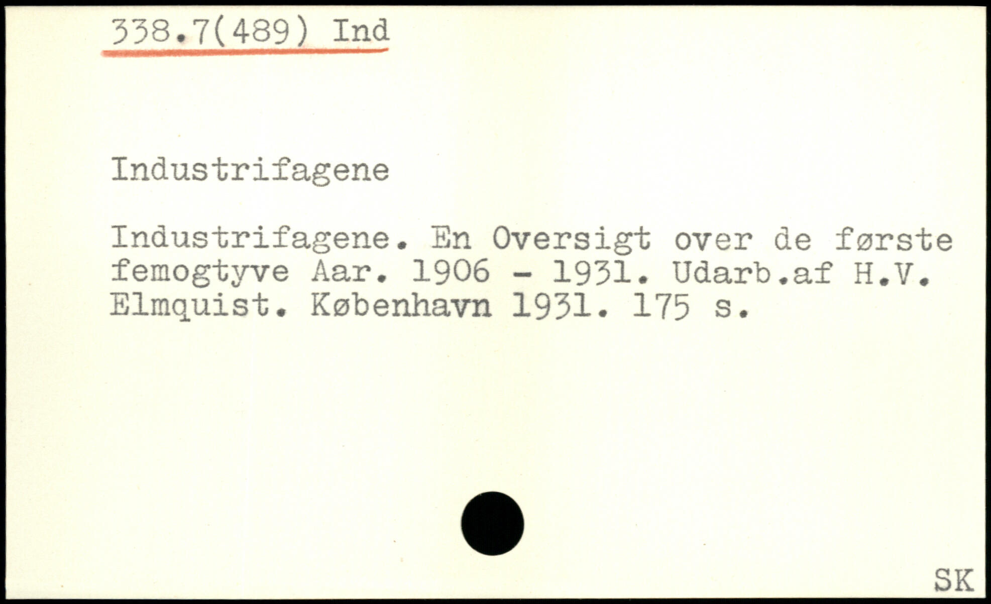 Industrifagene. En Oversigt over de første femogtyve Aar. 1906 - 1931. Udarb.af H.V. Elmquist.